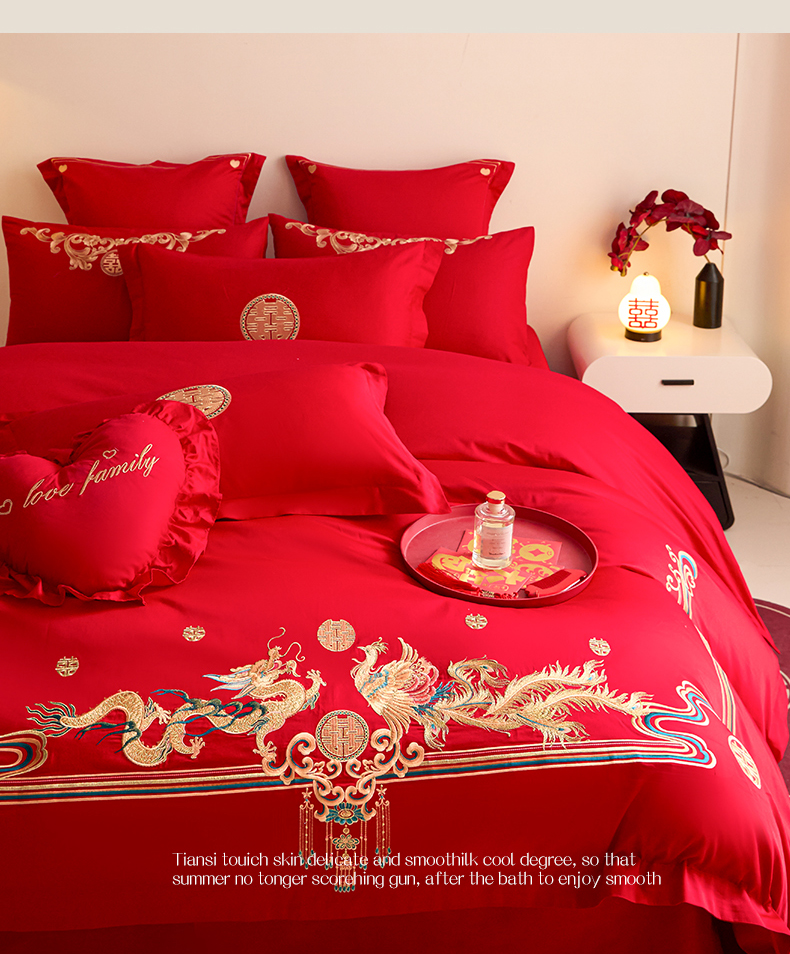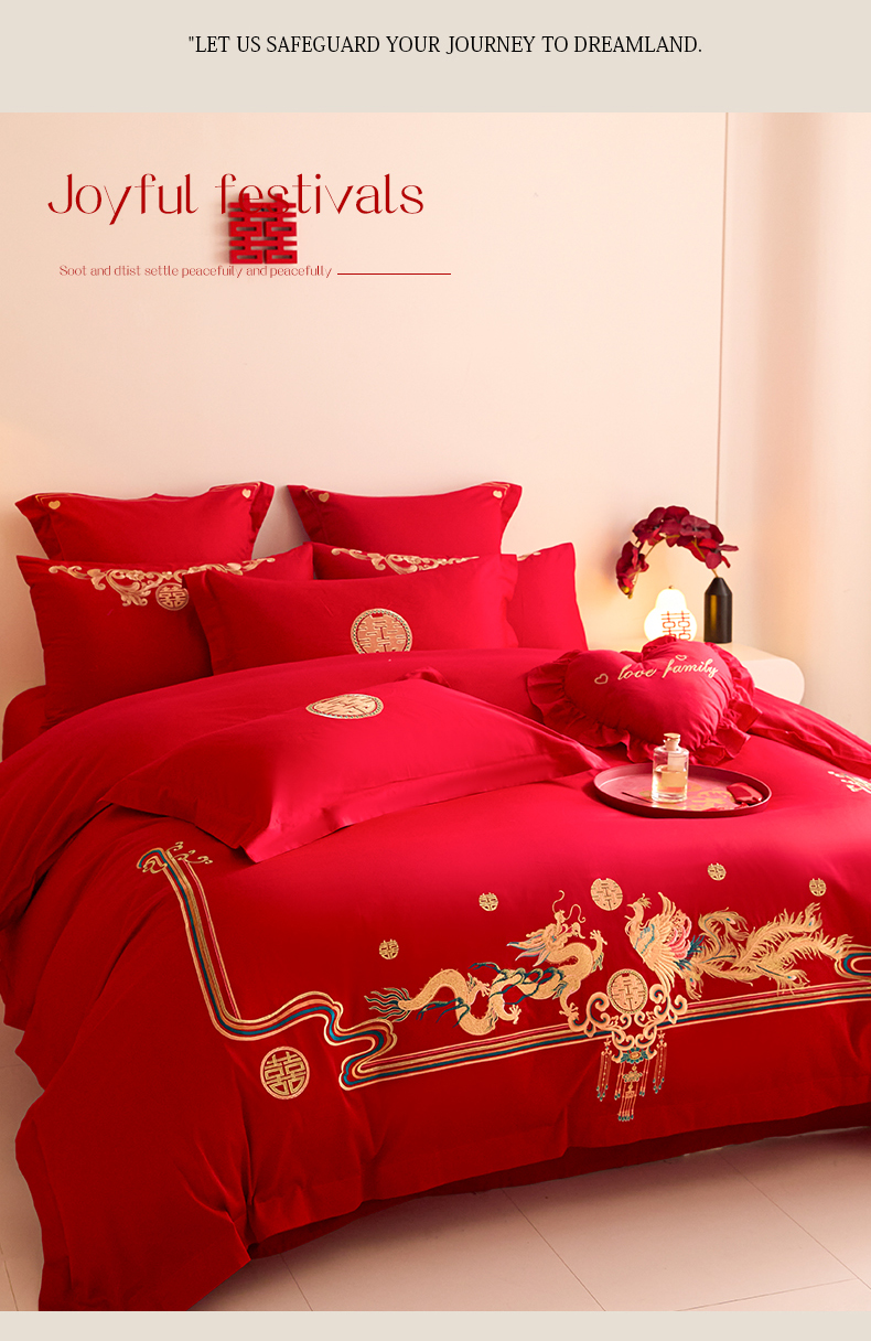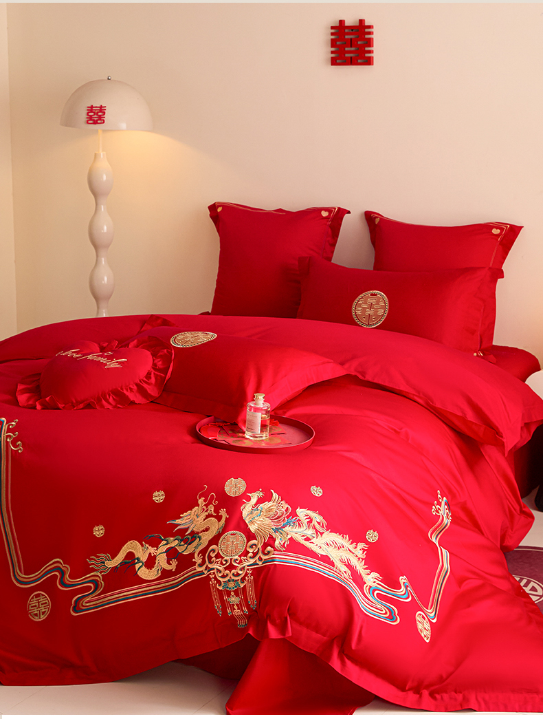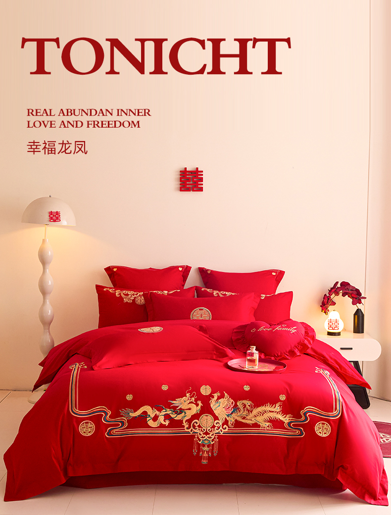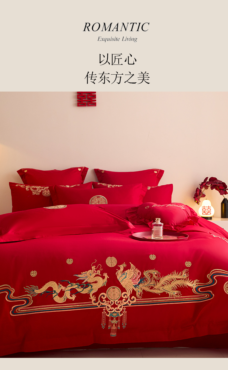 当前位置: 91家纺网 > 商品网购 > 床品套件 > 四件套 > 婚庆四件套 > 东方合美(原:皇家传奇) 2025新款长绒棉纯棉婚庆刺绣小红书系列四件套 幸福龙凤