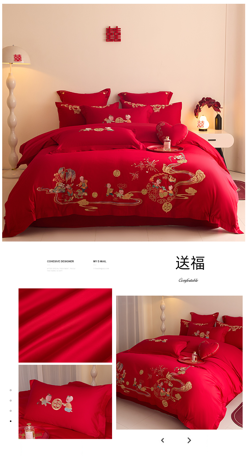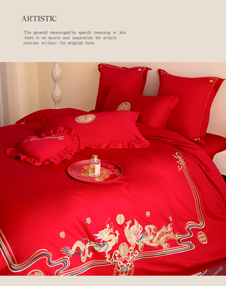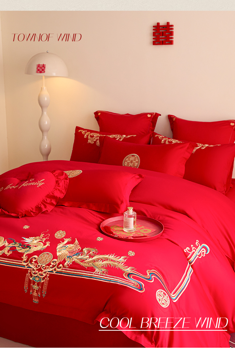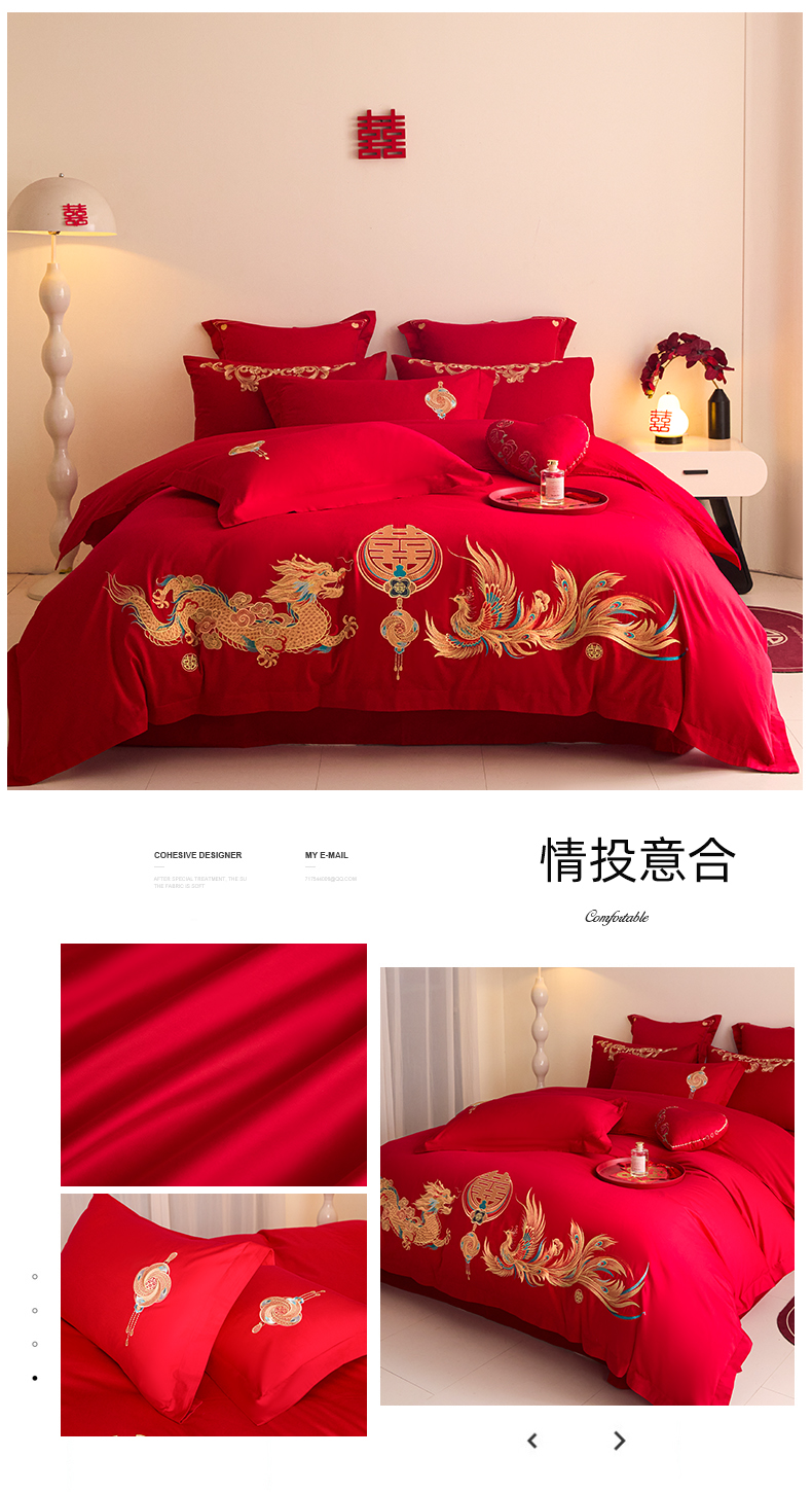 当前位置: 91家纺网 > 商品网购 > 床品套件 > 四件套 > 婚庆四件套 > 东方合美(原:皇家传奇) 2025新款长绒棉纯棉婚庆刺绣小红书系列四件套 幸福龙凤