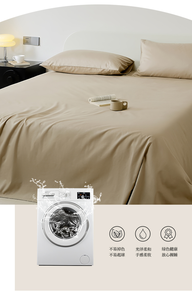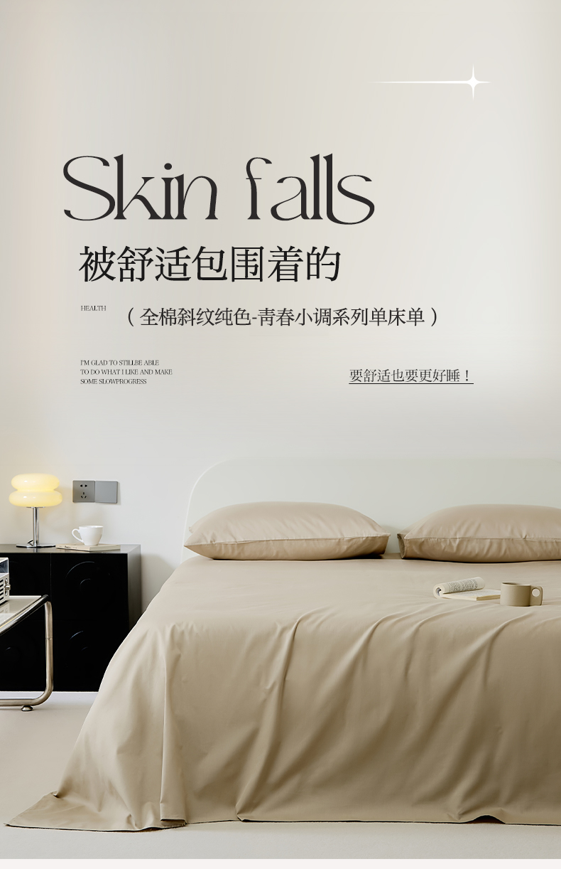 商品名称:EH家居 2025新款全棉斜纹纯色-青春小调系列单床单 米茶