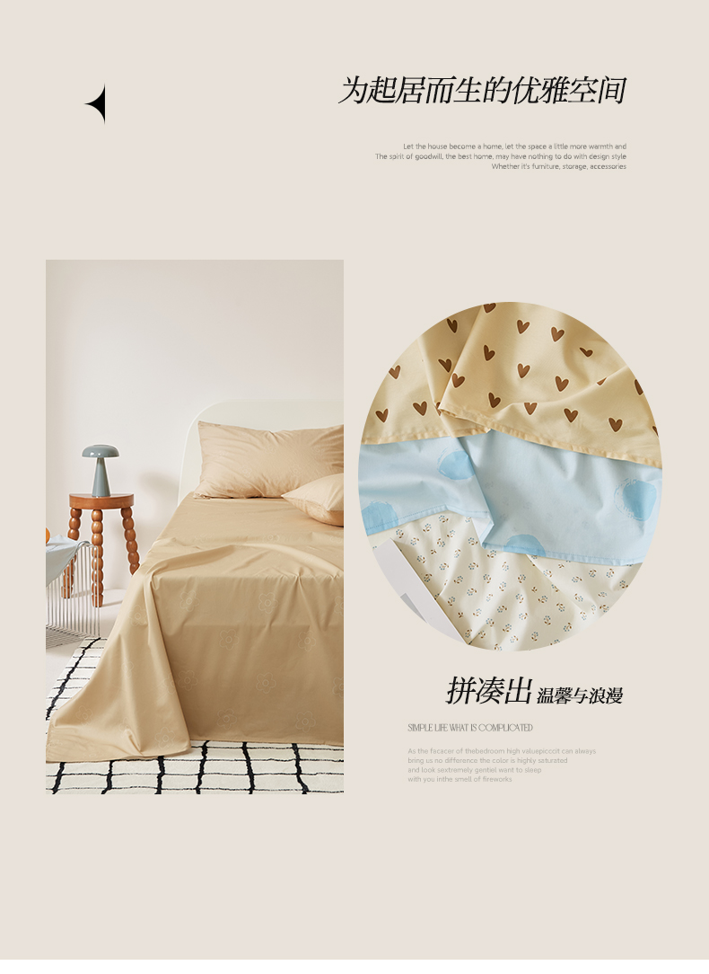 商品名称:EH家居 2025新款全棉斜纹印花-青春小调系列单床单 可可饼干