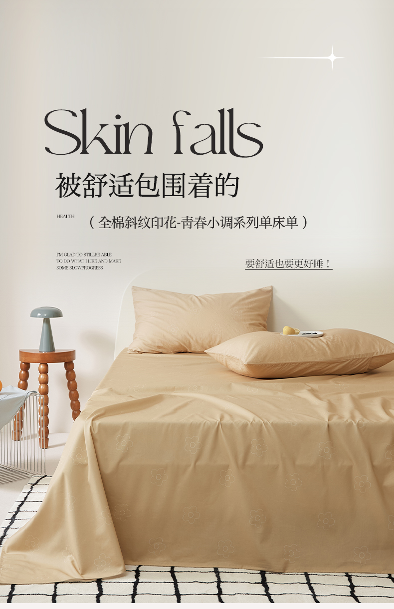 EH家居 2025新款全棉斜纹印花-青春小调系列单床单 可可饼干