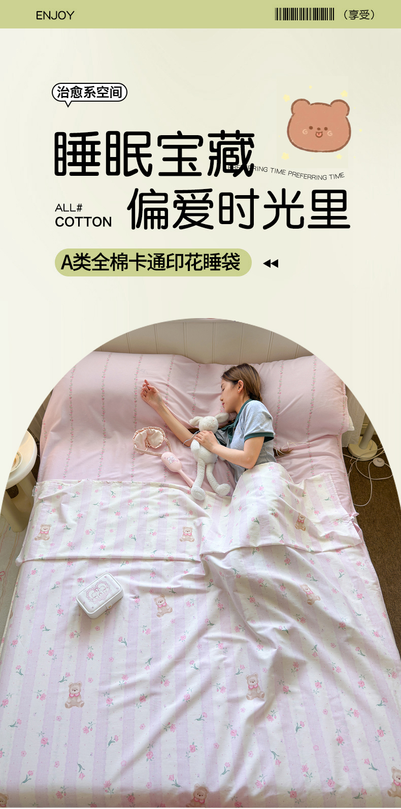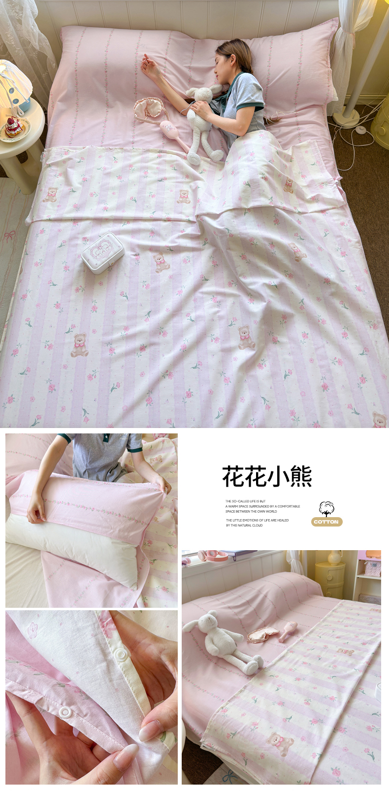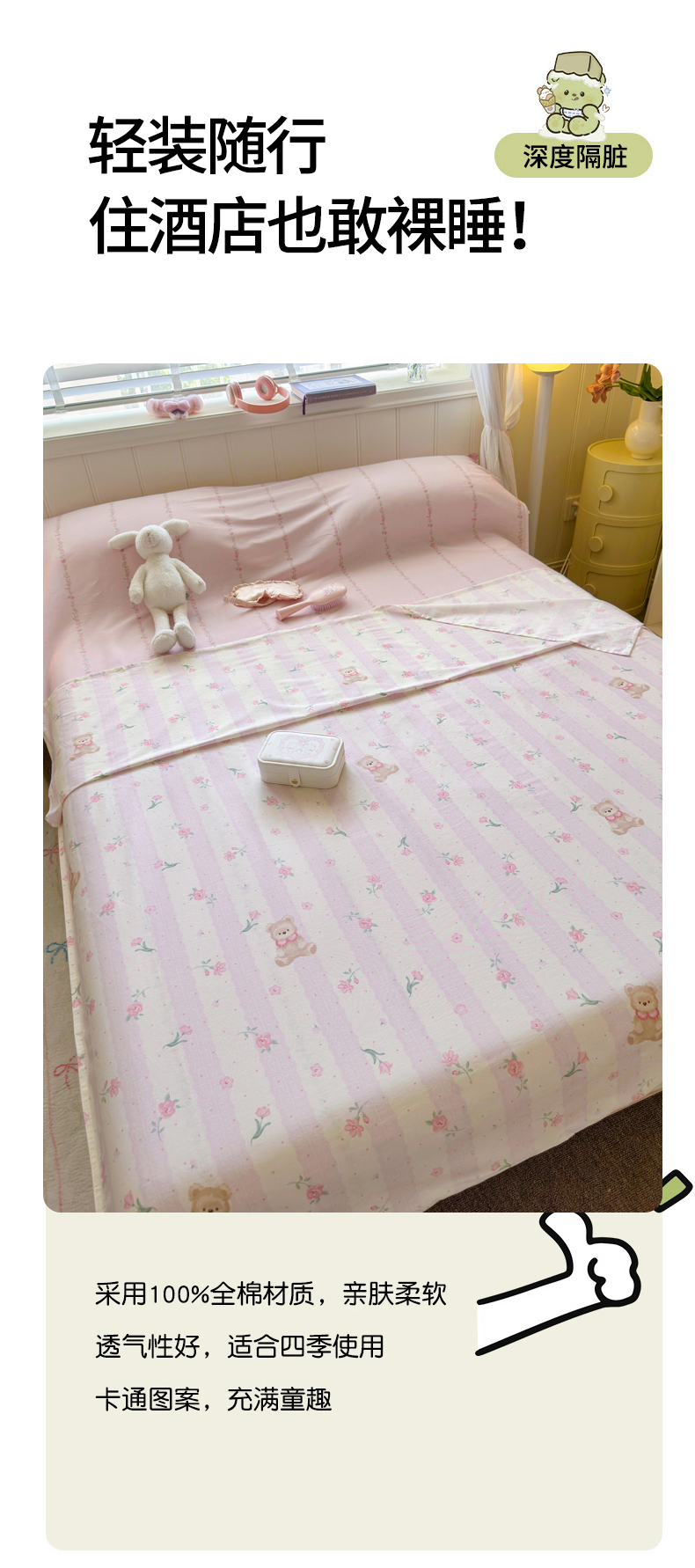 商品名称:Sweet dreams甜梦 2025新款全棉纯棉卡通印花睡袋酒店一体式全棉旅行睡袋 花花小熊