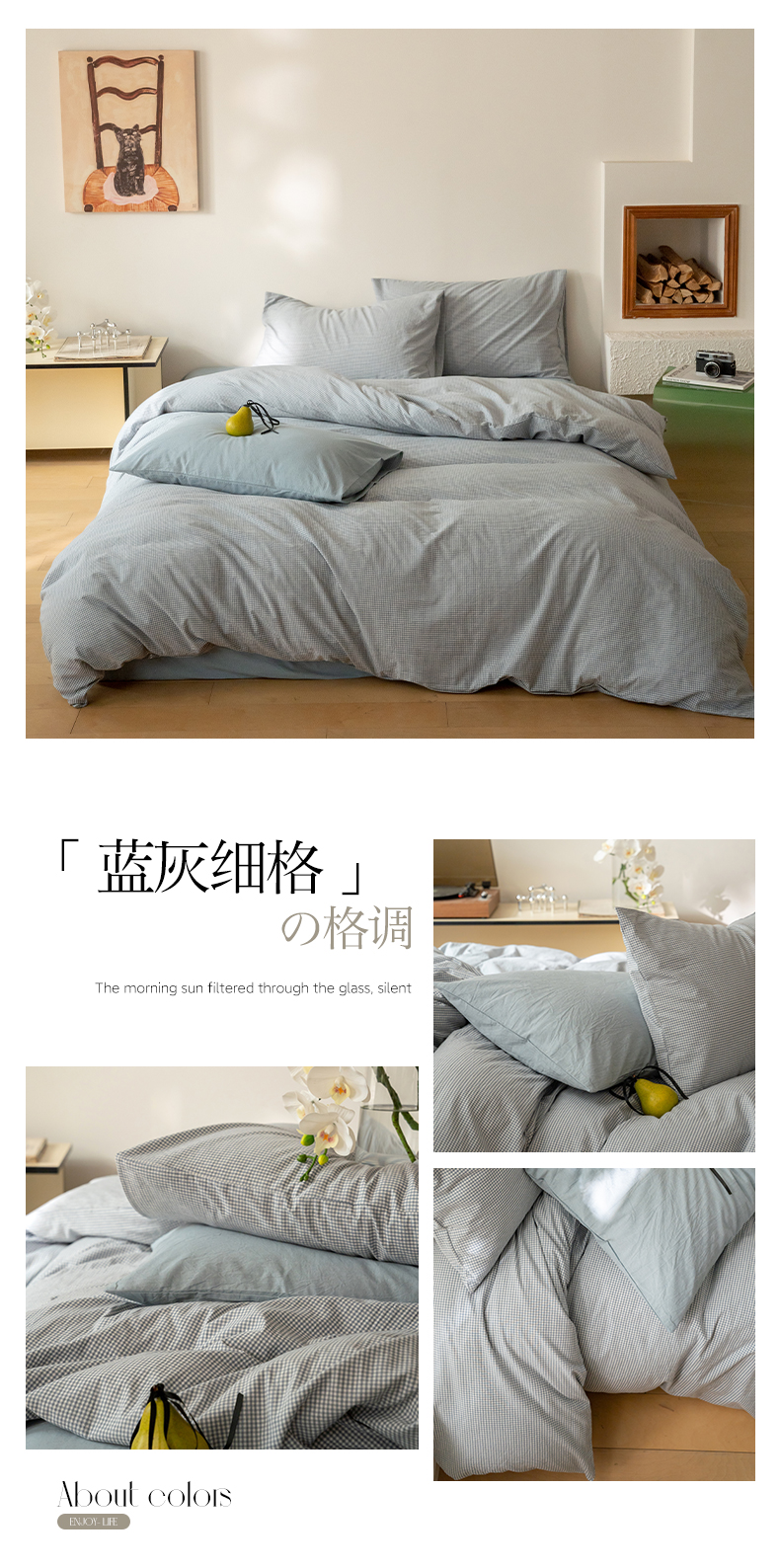 (总)全棉色织水洗棉四件套纯棉简约格子被套床单宿舍学生三件套,贝拉粉,冰激凌格,简格兰,简兮兰,简兮绿,绿灰格,星空桔,印象黄