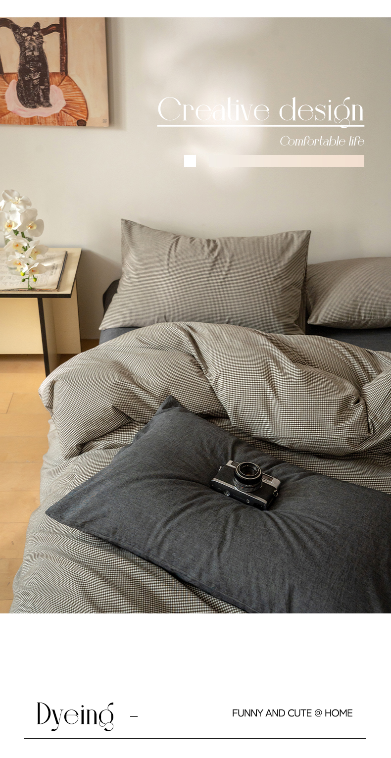 (总)全棉无印色织水洗棉提花四件套良品纯棉日式简约学生三件套,淡雅白,卡其色,抹茶绿,肉桂黄,深灰色