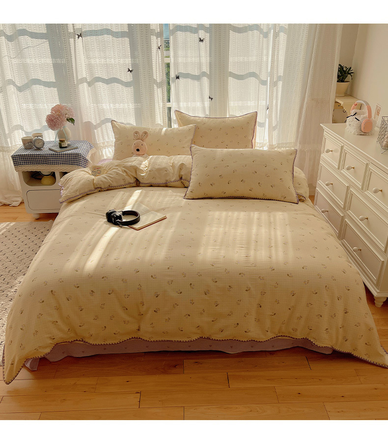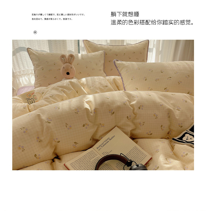 (总)瑞莱 2026新款A类全棉纯棉有氧双层纱四件套,白熊小姐,彩色木马,淡彩花笺,费尔岛小熊,焦糖奶汪-桔,焦糖奶汪-绿,萌星,苹果星星人,小樱桃,樱桃画报