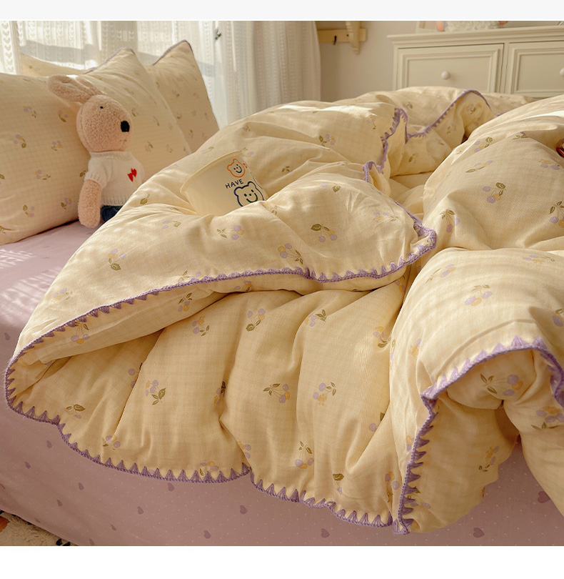 商品名称:瑞莱 2025开学季全棉印花贝壳边四件套 樱桃甜趣-黄