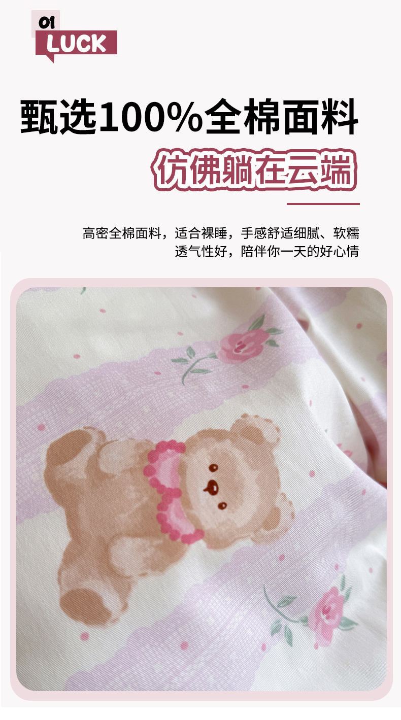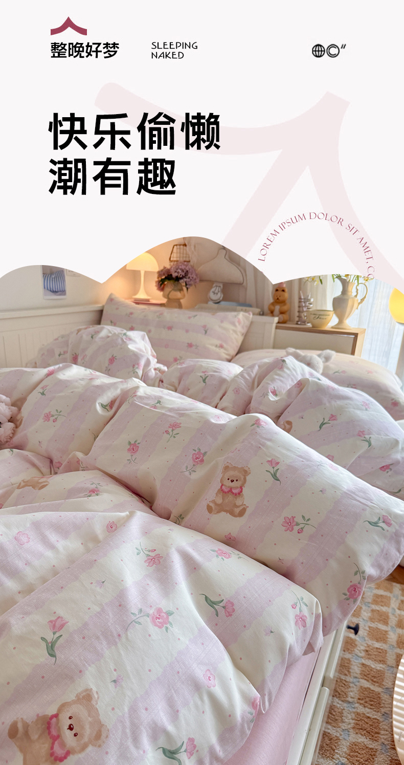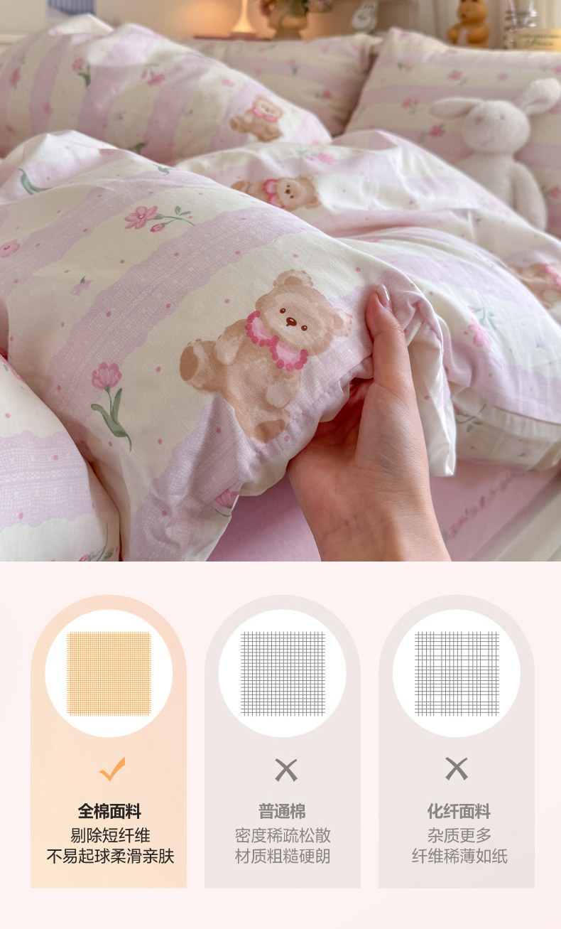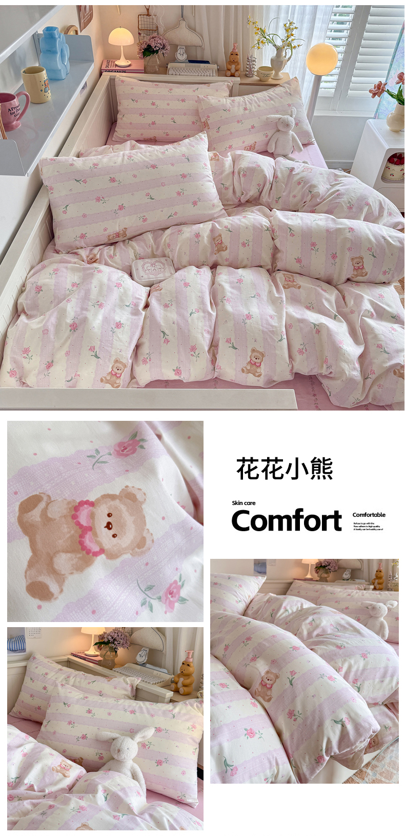 当前位置: 91家纺网 > 商品网购 > 床品套件 > 四件套 > 全棉普通四件套 > Sweet dreams甜梦 2025新款卡通小清新全棉四件套 花花小熊