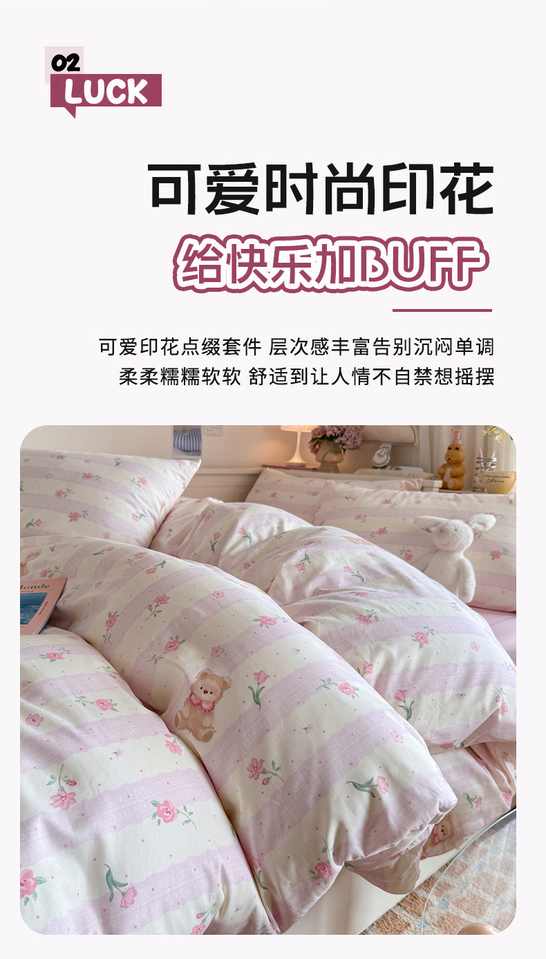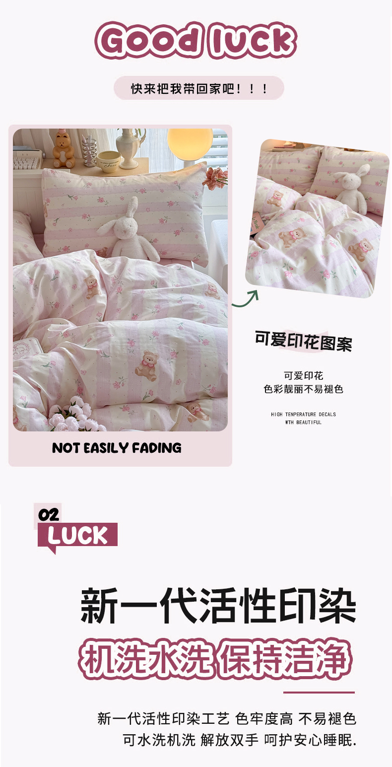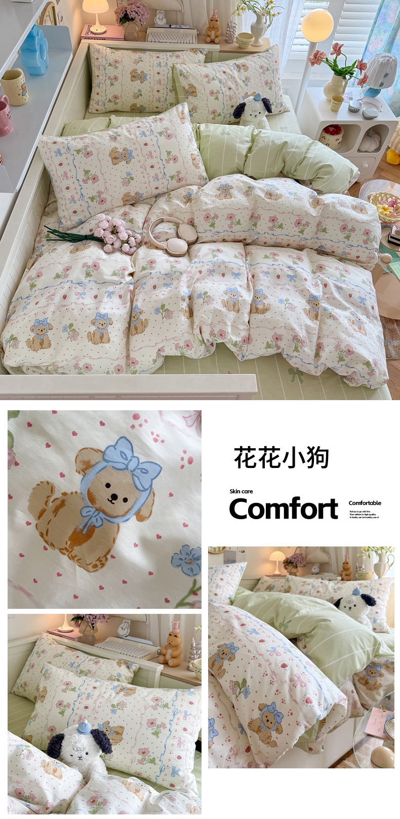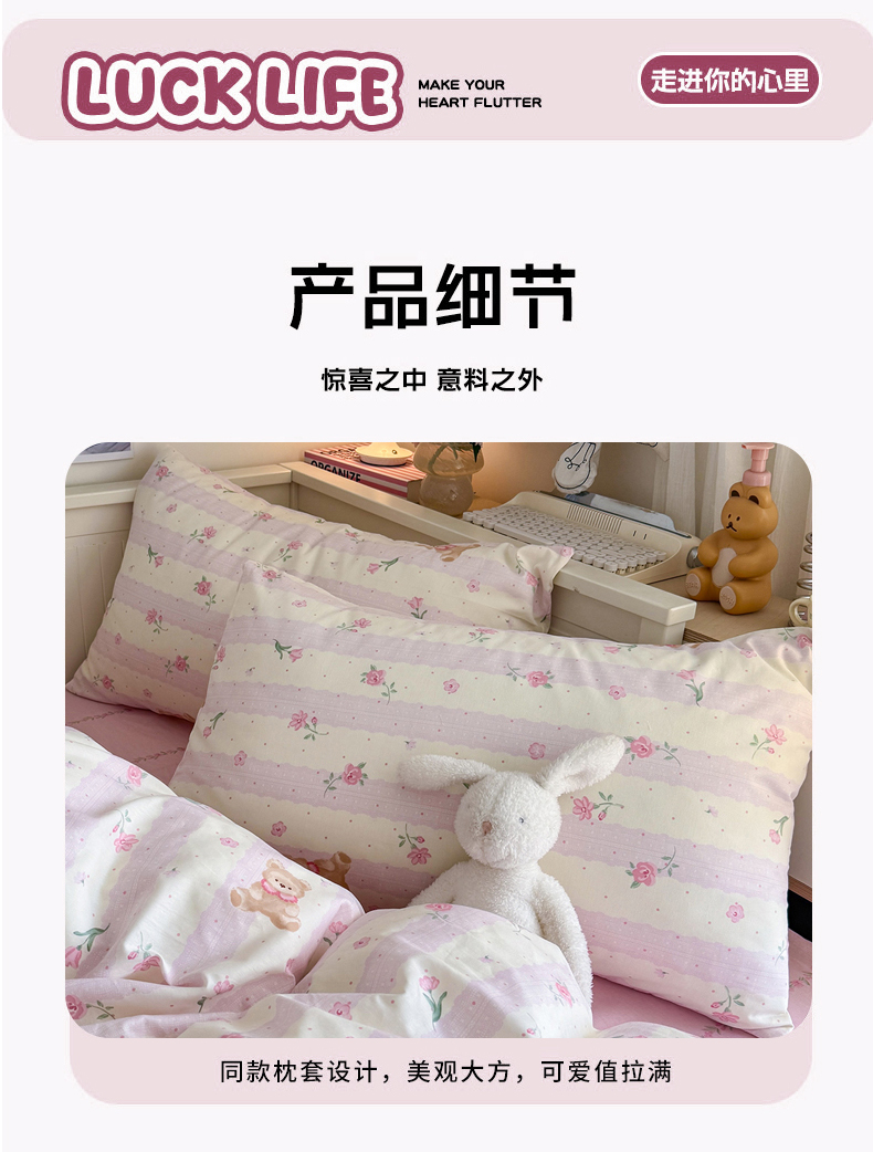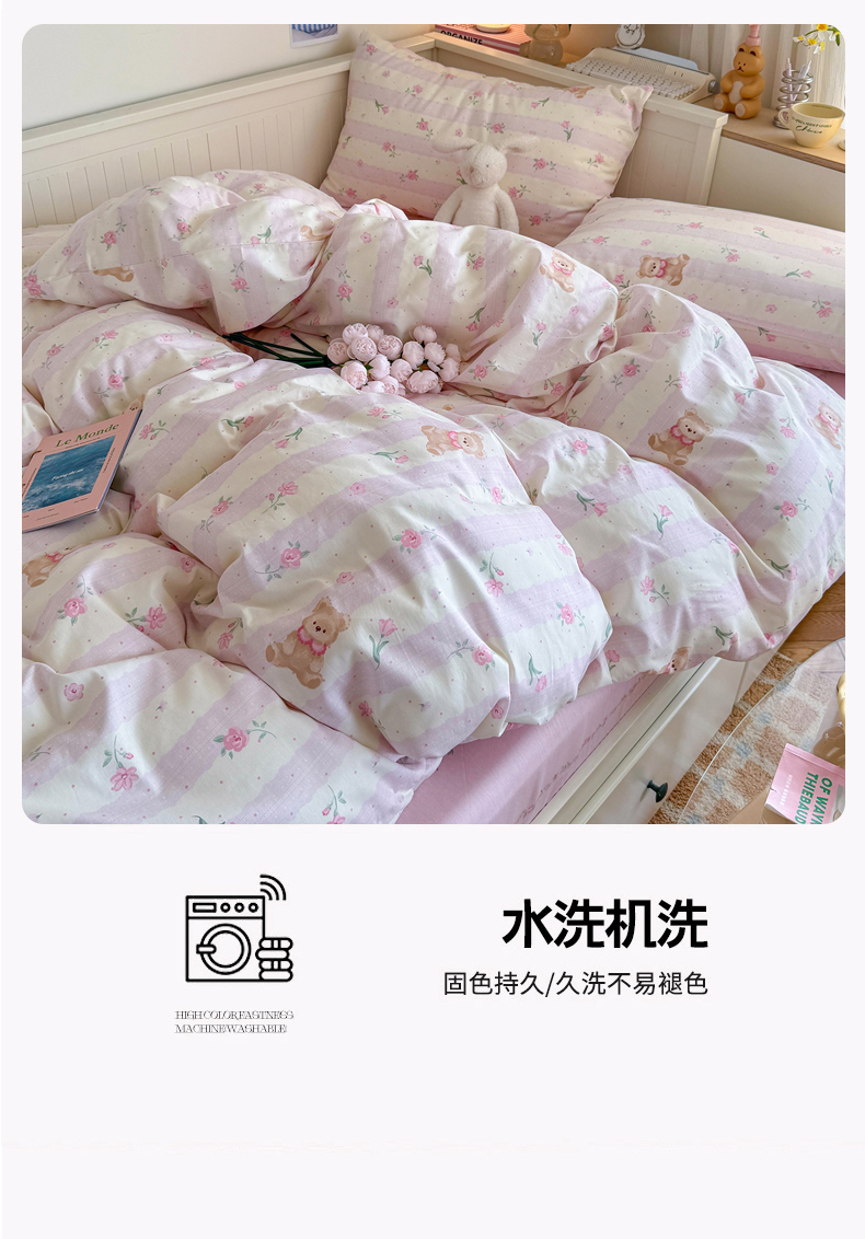当前位置: 91家纺网 > 商品网购 > 床品套件 > 四件套 > 全棉普通四件套 > Sweet dreams甜梦 2025新款卡通小清新全棉四件套 花花小熊