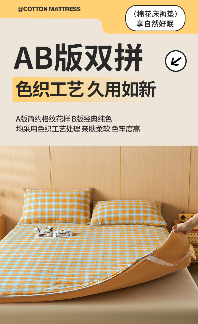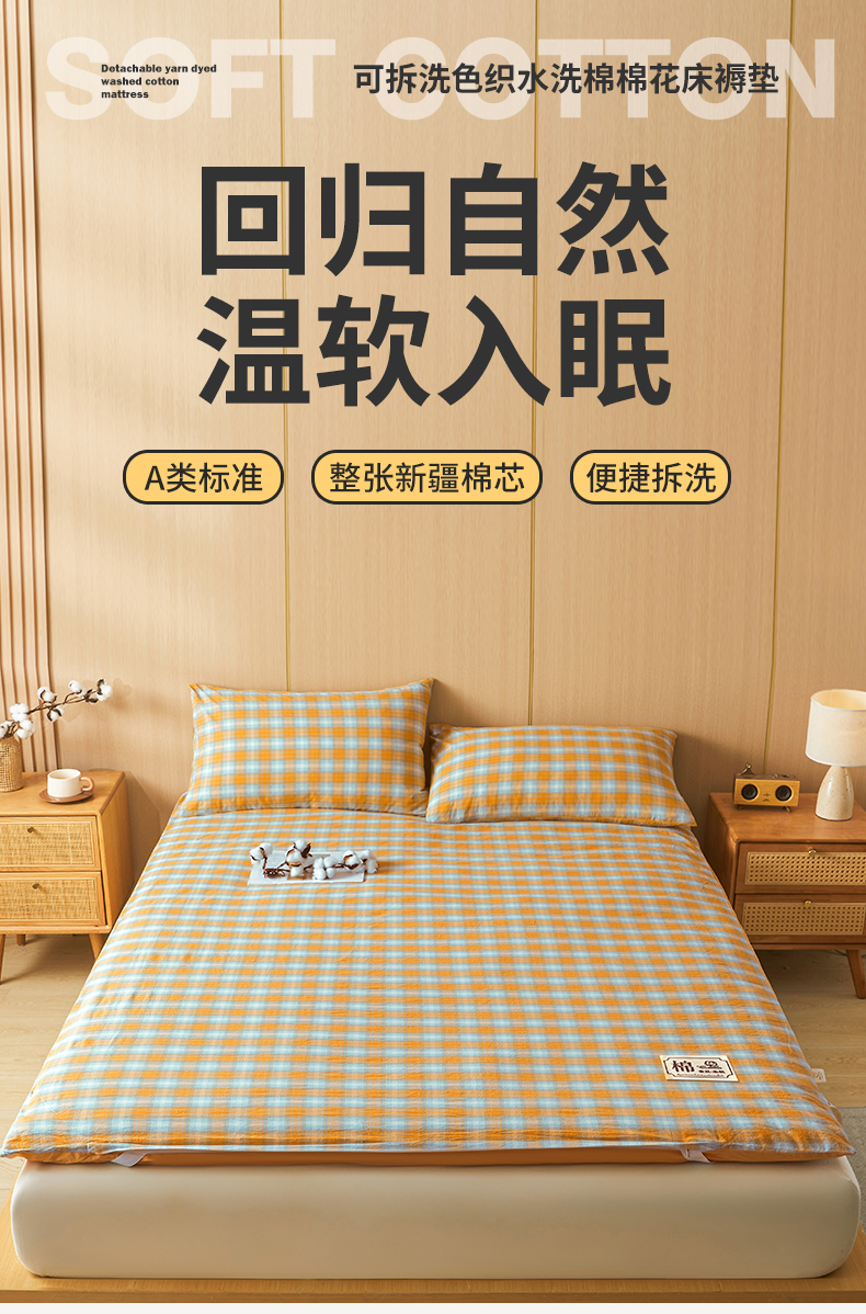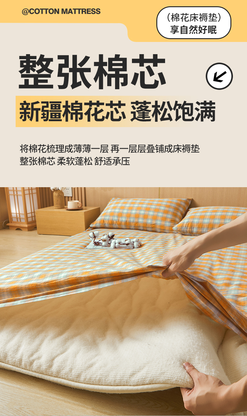 • 91家纺网 家纺一手货源 找家纺 晓时候 20252新款可拆洗新疆棉花床垫被褥子学生宿舍亲肤水洗棉棉花床垫-家用款 蜜桔格