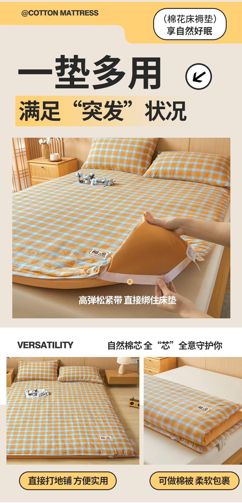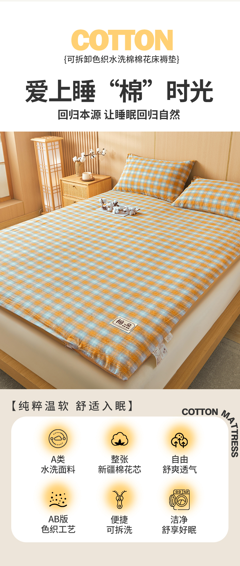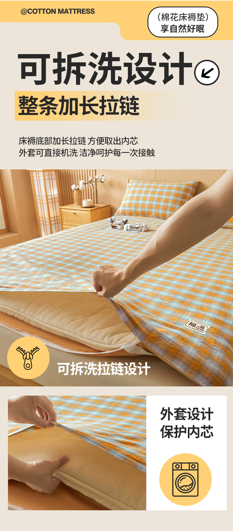 • 91家纺网 家纺一手货源 找家纺 晓时候 20252新款可拆洗新疆棉花床垫被褥子学生宿舍亲肤水洗棉棉花床垫-家用款 蜜桔格