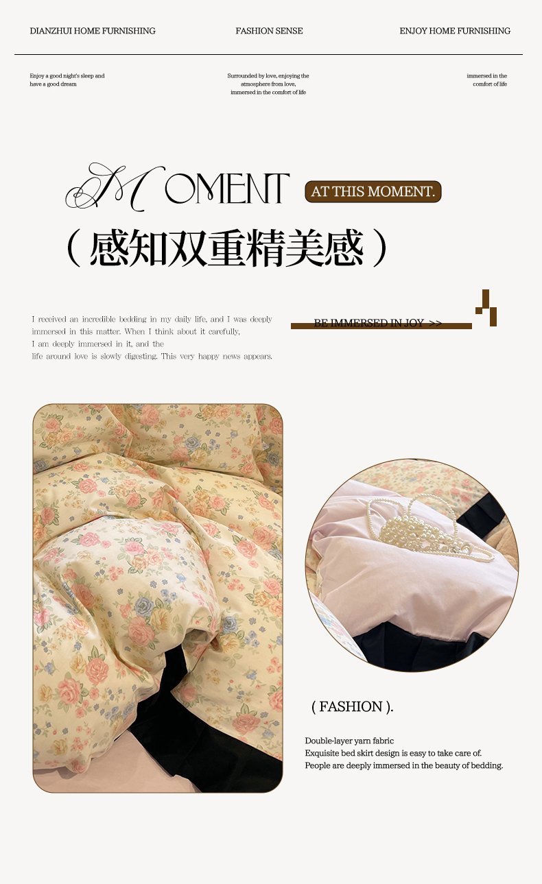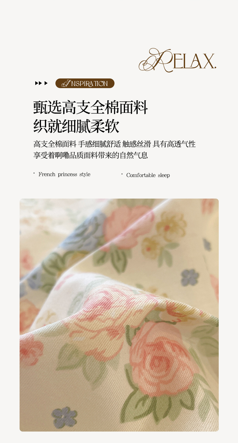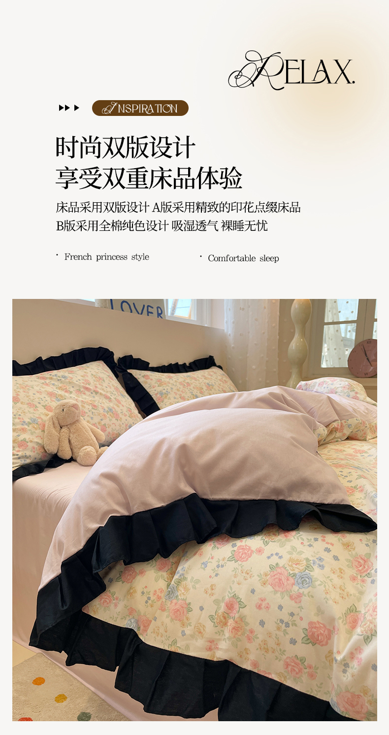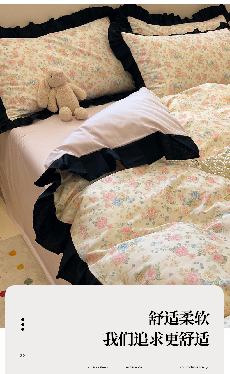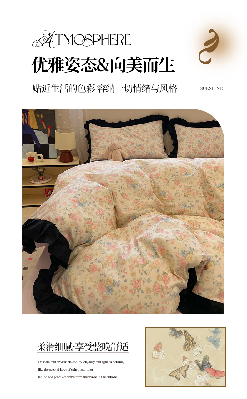 当前位置: 91家纺网 > 商品网购 > 床品套件 > 四件套 > 全棉普通四件套 > 羚羊语家纺 2025秋冬新款复古小清新花边款40支全棉纯棉轻法式13372小清新喷气印花 莫奈花园
