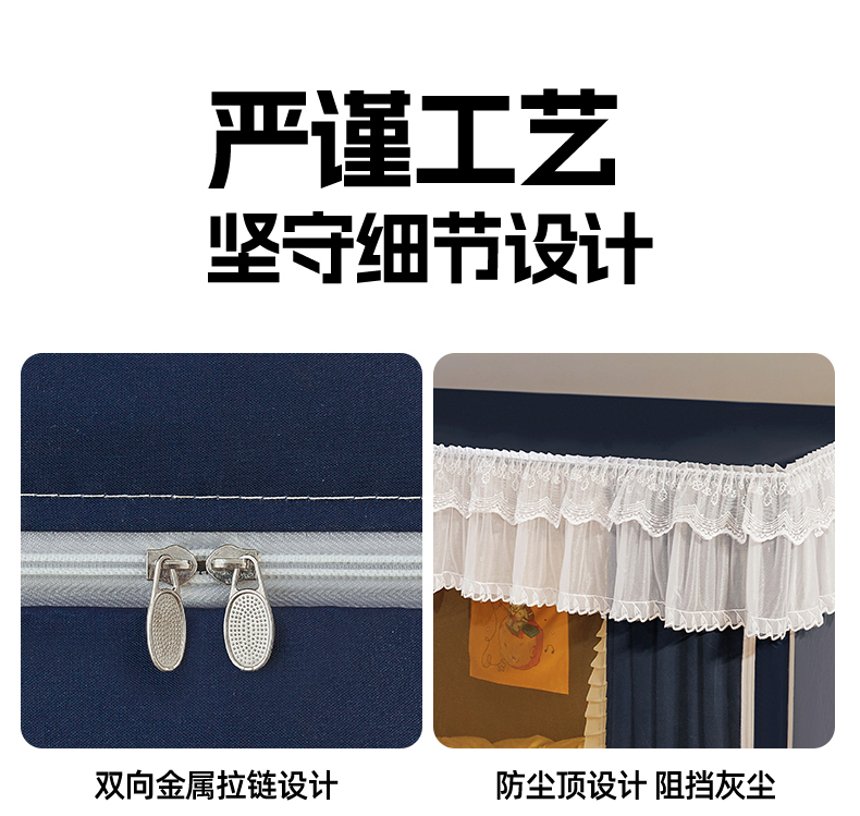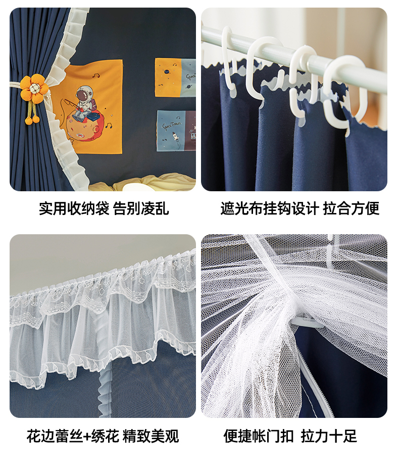当前位置: 91家纺网 > 商品网购 > 床上用品 > 蚊帐 > 学生蚊帐 > 夏彩 2025新款植绒布蕾丝绣花强遮光铁艺支架学生蚊帐-88625 88625-藏青色
