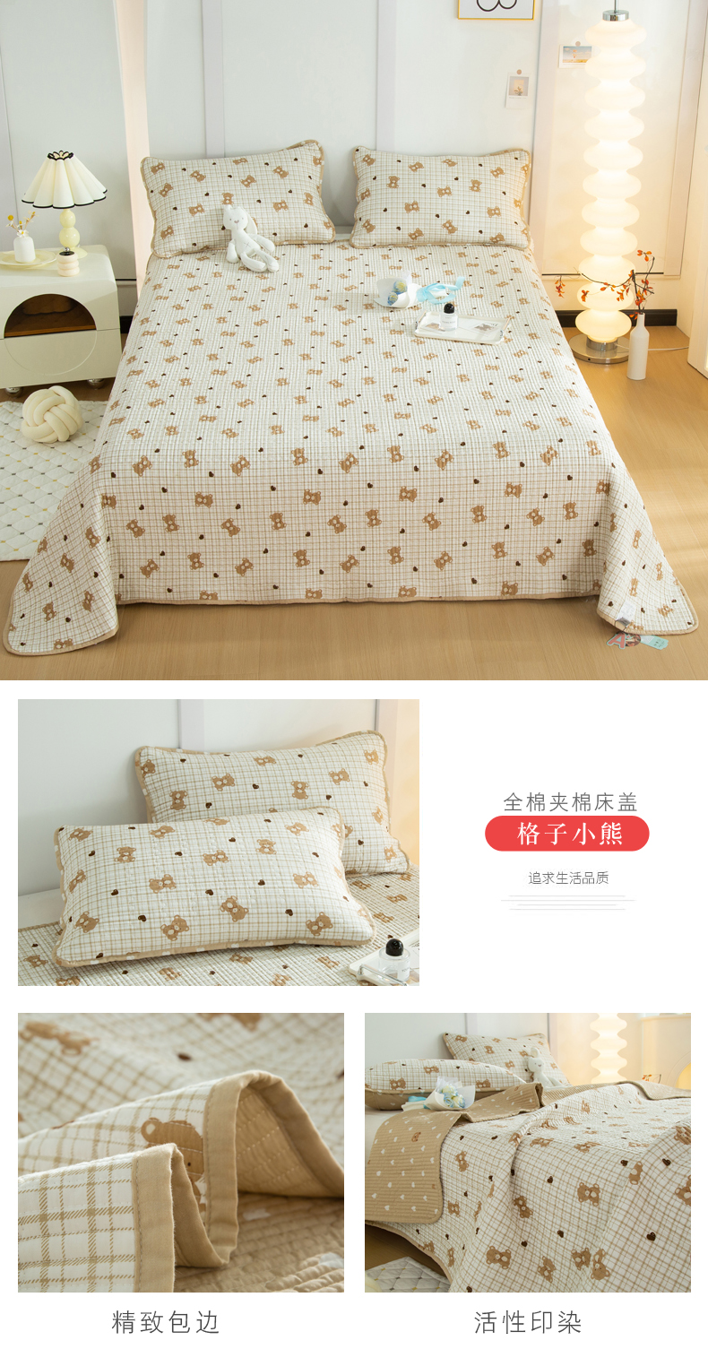 (总)橙子家居 2025新款双面全棉纯棉砂洗夹棉床盖三件套,粉木马,腊肠狗,梦露花园,苹果趣事,甜心南瓜,小熊贝蒂,樱桃派,组合图仅供展示,格子小熊,赫本,莫娇-黄,沁花-绿,薇恋时光,雾里花-粉,雅清