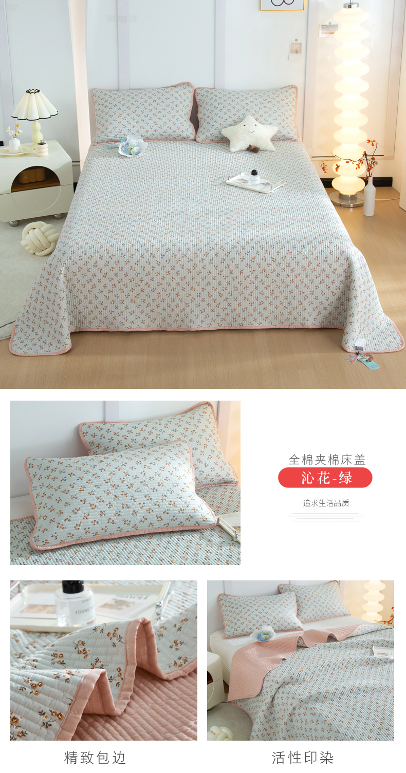 商品名称:橙子家居 2024新款高温水洗双面全棉纯棉斜纹13372印花款单品床盖(风格二) 沁花-绿