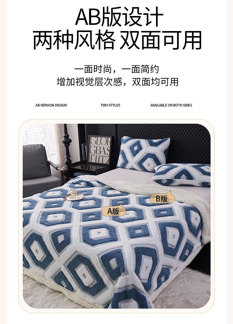 枋梢家纺 2025新款几何空间阳离子提花镂空塔芙绒羊羔绒保暖午睡双层毛毯办公室盖毯 几何-海蓝