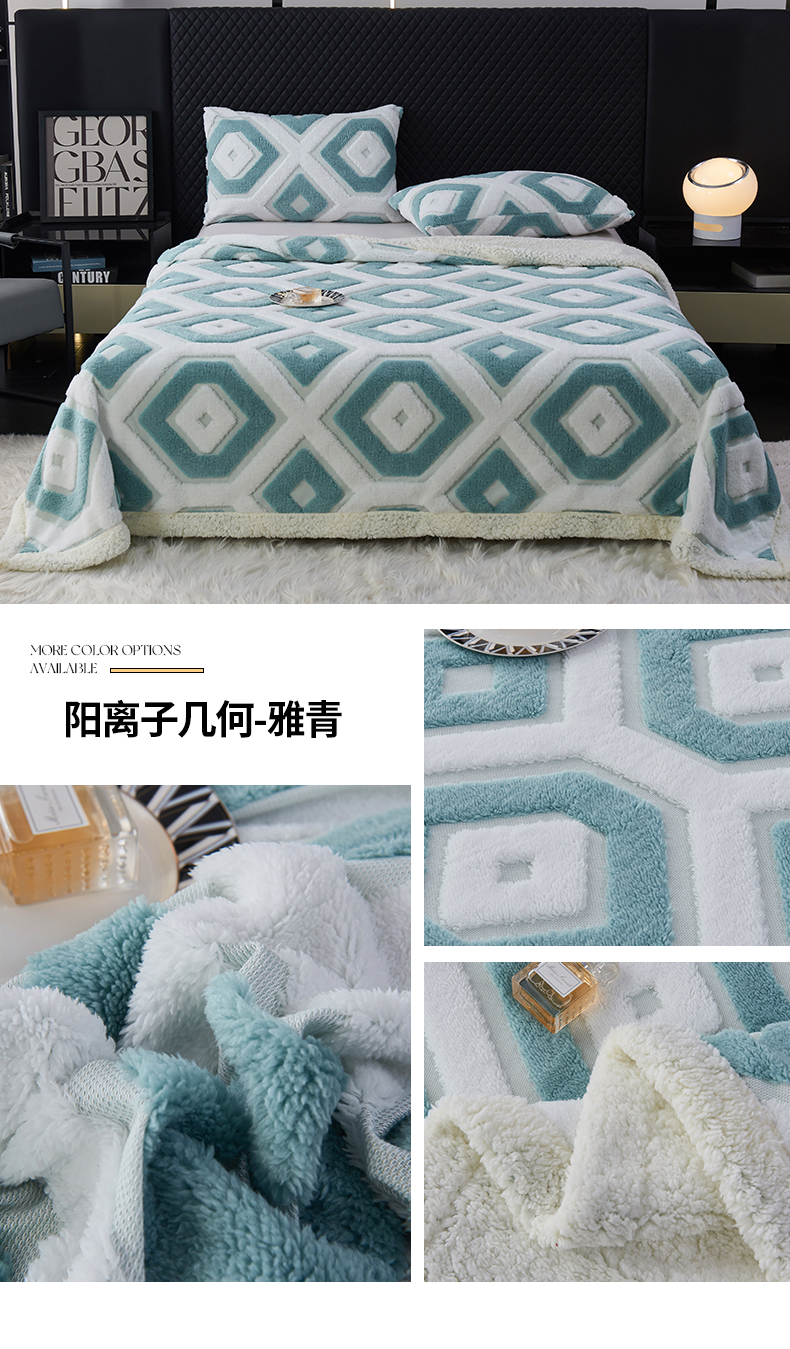 (总)枋梢家纺 2025新款几何空间阳离子提花镂空塔芙绒羊羔绒保暖午睡双层毛毯办公室盖毯,组合图仅做展示,几何-翠绿,几何-豆沙,几何-海蓝,几何-玫红,几何-浅灰,几何-浅咖,几何-深灰,几何-深咖,几何-雅青