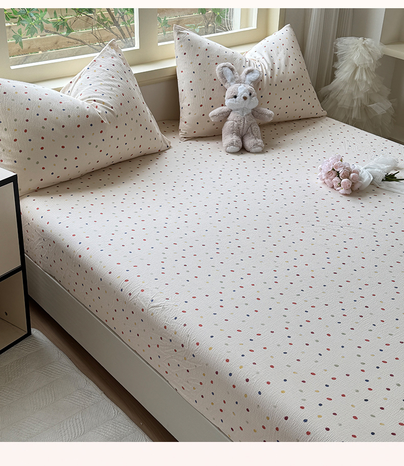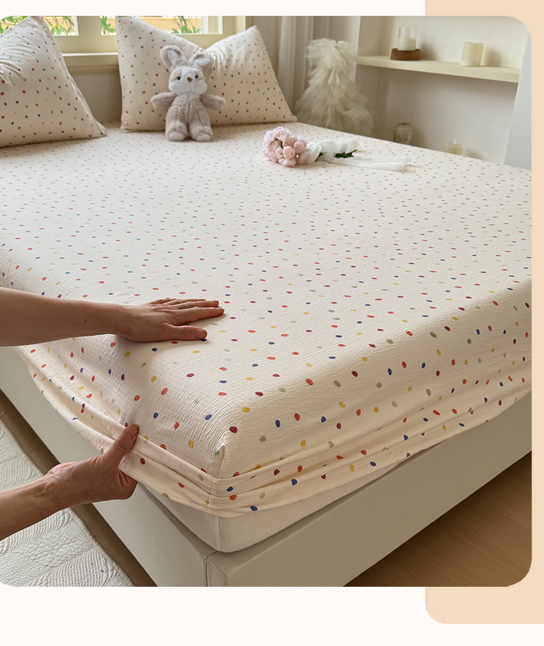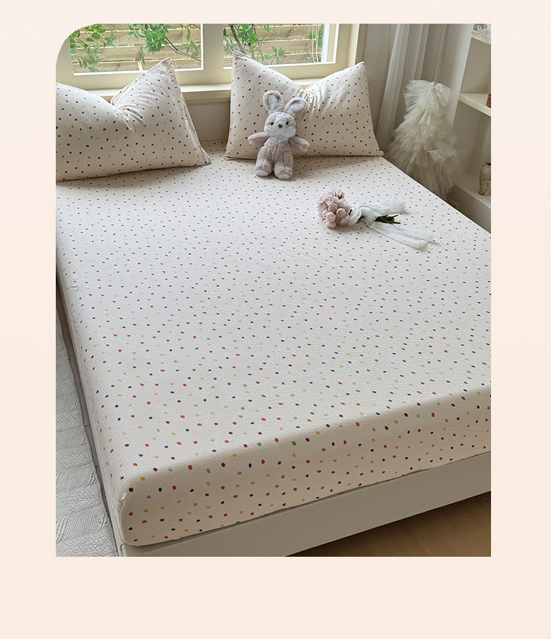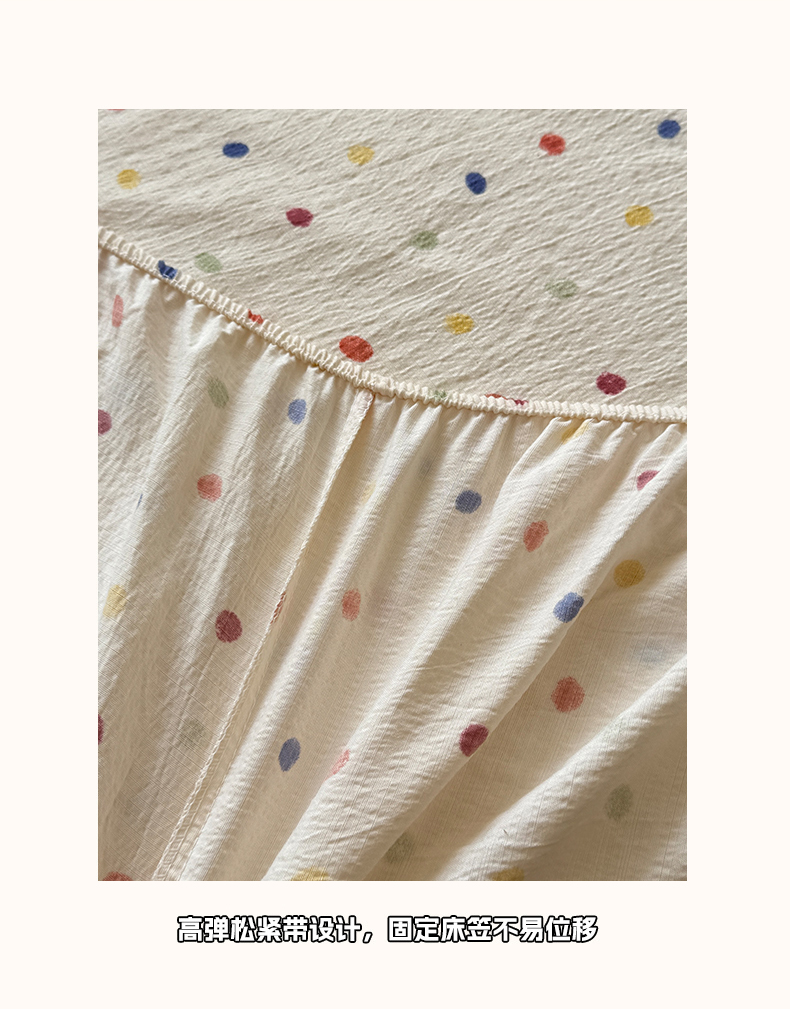叠派家纺 2025新款A类双层纱提花单品系列-单床笠 奶油波点