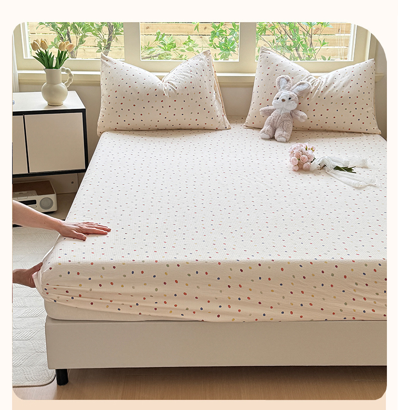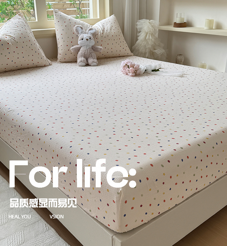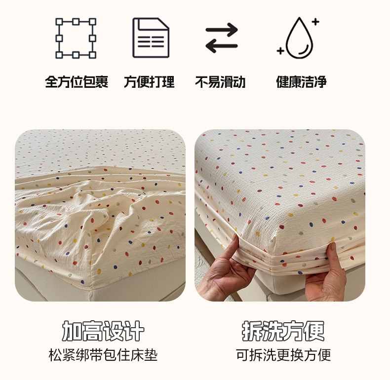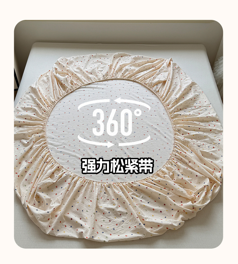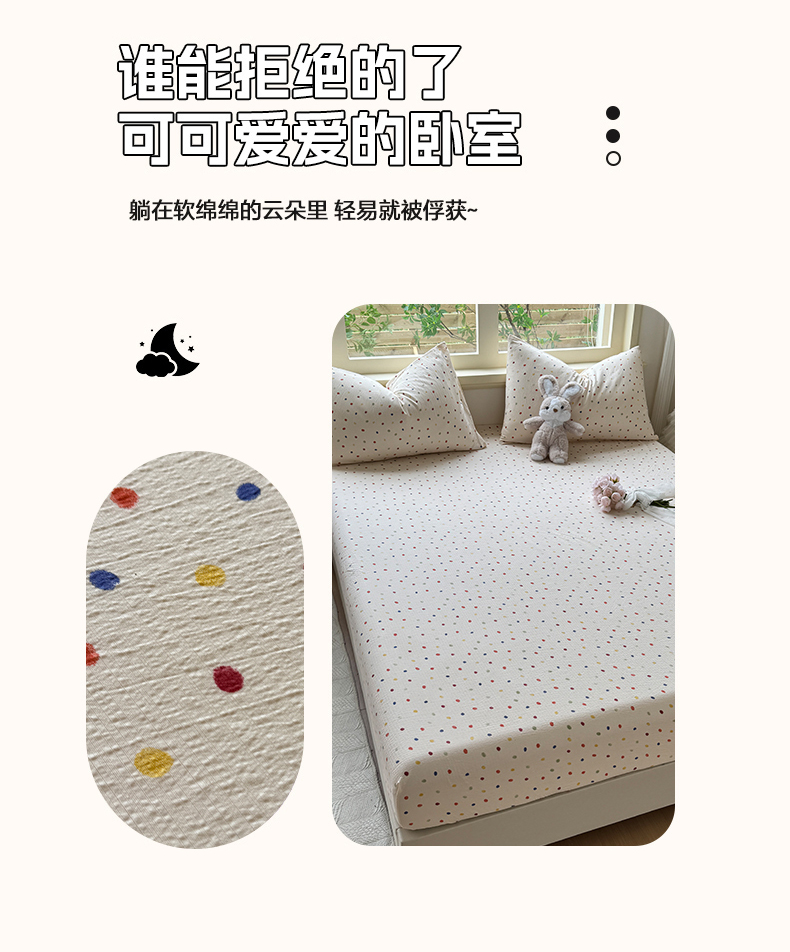 • 91家纺网 家纺一手货源 找家纺 叠派家纺 2025新款A类双层纱提花单品系列-单床笠 奶油波点