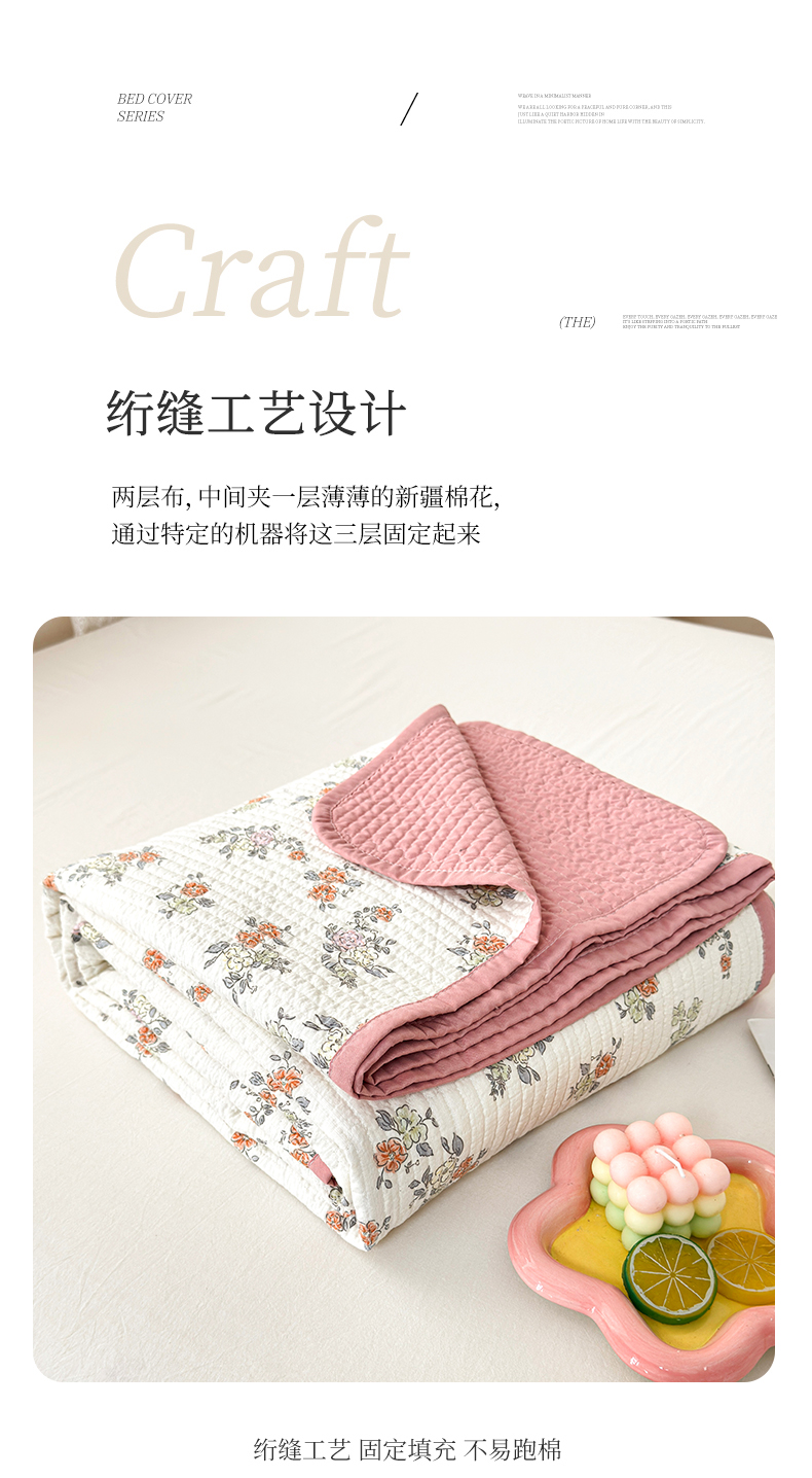 橙子家居 2024新款A类木棉印花床盖三件套四季款夹层新疆棉花 含苞待放