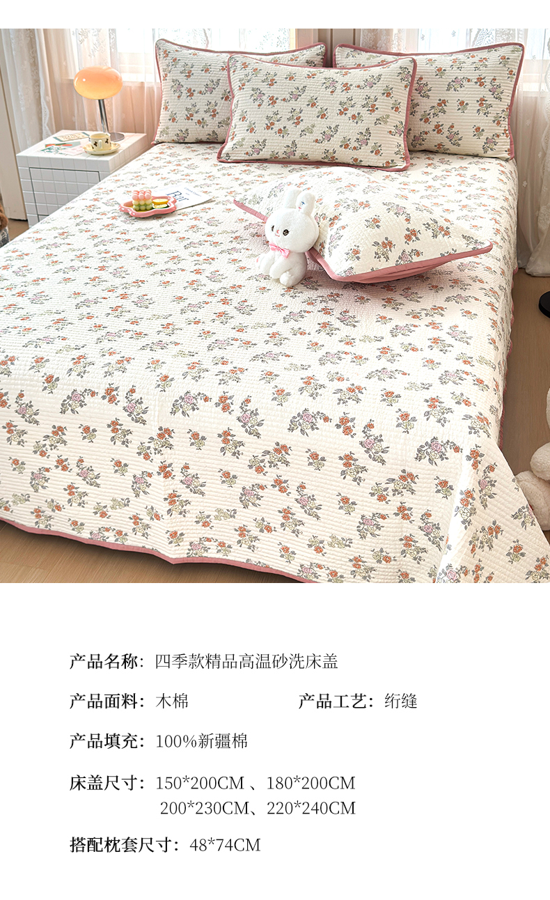 (总)橙子家居 2025年新款小清新全棉高温砂洗棉花床盖四件套跑量款床盖单面纯棉,春风里-紫,琥珀流光,蓝心兔,玲娜,梦幻花园兔,舒芙蕾,甜甜夏日,芋泥啵啵