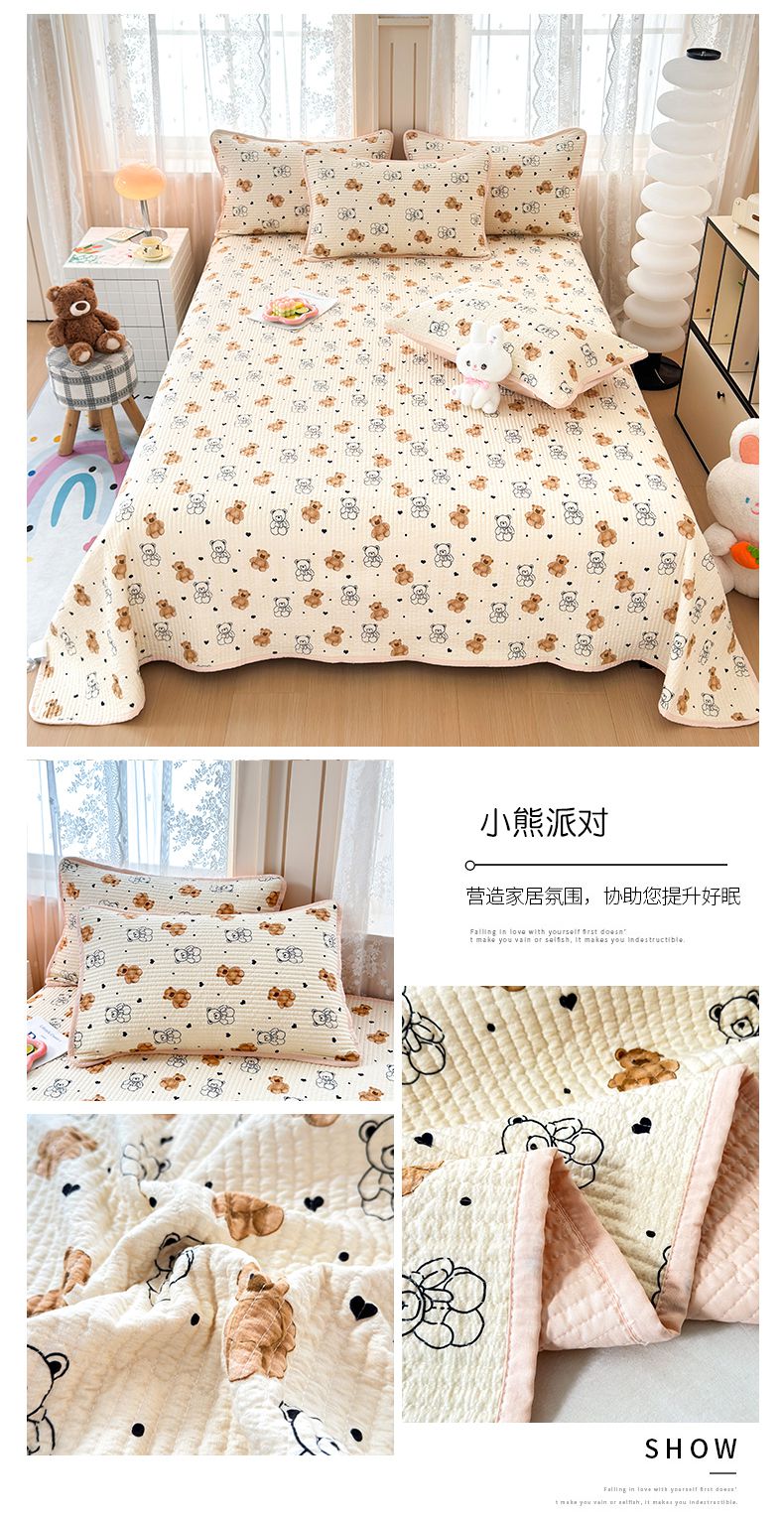 (总)橙子家居 2025新款双面全棉纯棉砂洗夹棉床盖三件套,粉木马,腊肠狗,梦露花园,苹果趣事,甜心南瓜,小熊贝蒂,樱桃派,组合图仅供展示,格子小熊,赫本,莫娇-黄,沁花-绿,薇恋时光,雾里花-粉,雅清