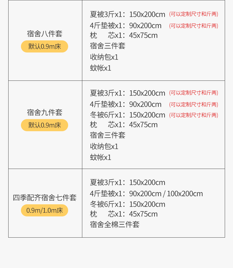 0.9-1.0m床四季配齐宿舍七件套 | ¥191.00 |
