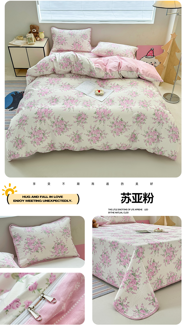 (总)橙子家居 2025年新款小清新全棉高温砂洗棉花床盖四件套跑量款床盖单面纯棉,春风里-紫,琥珀流光,蓝心兔,玲娜,梦幻花园兔,舒芙蕾,甜甜夏日,芋泥啵啵