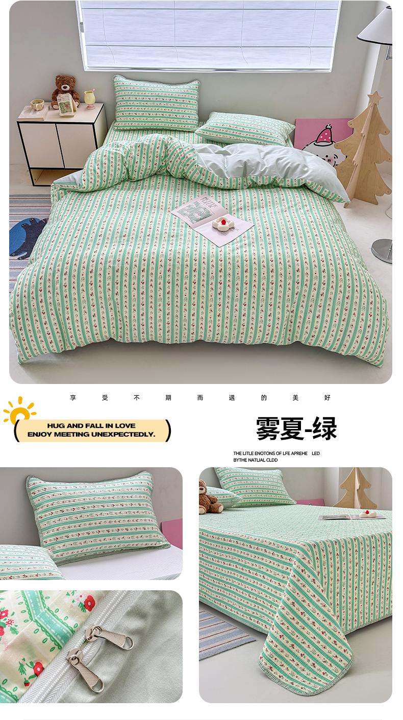 • 91家纺网 家纺一手货源 找家纺 橙子家居 2025新款双面全棉纯棉13372印花棉花床盖三件套-第二批 组合图仅供展示