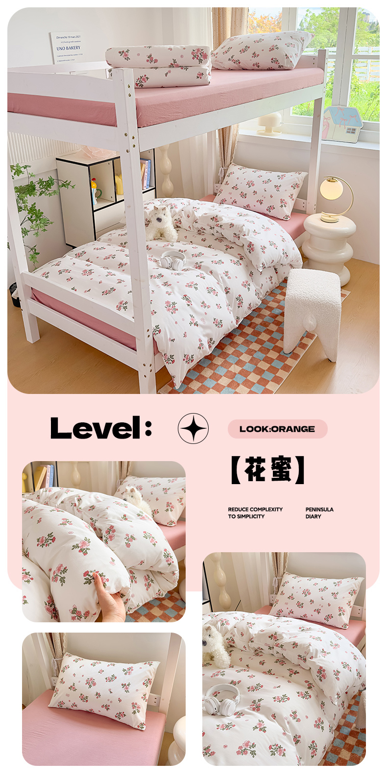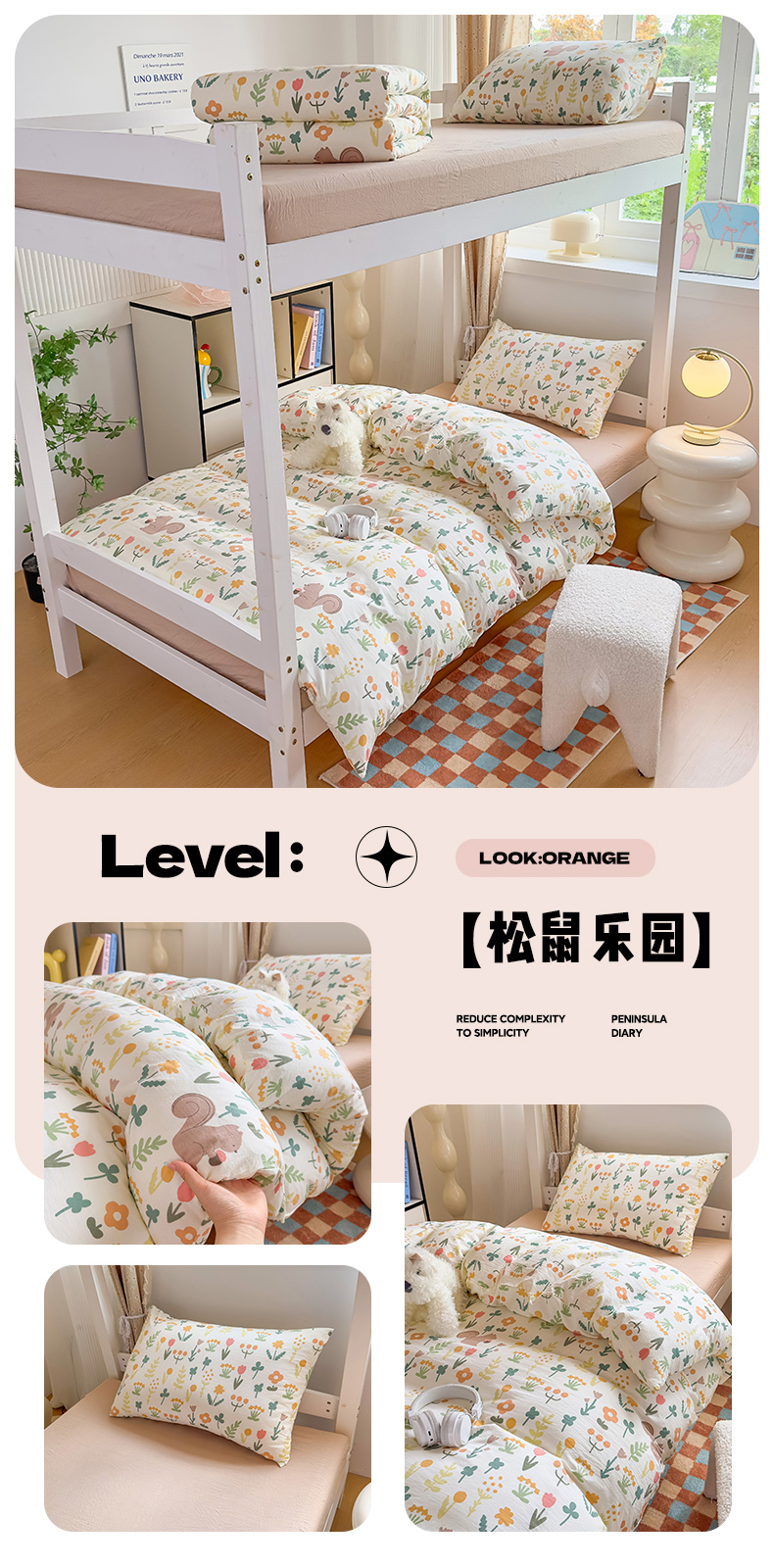 商品名称:港岛妹妹 2025新款云朵水洗工艺学生床宿舍上下铺三件套 小幸运