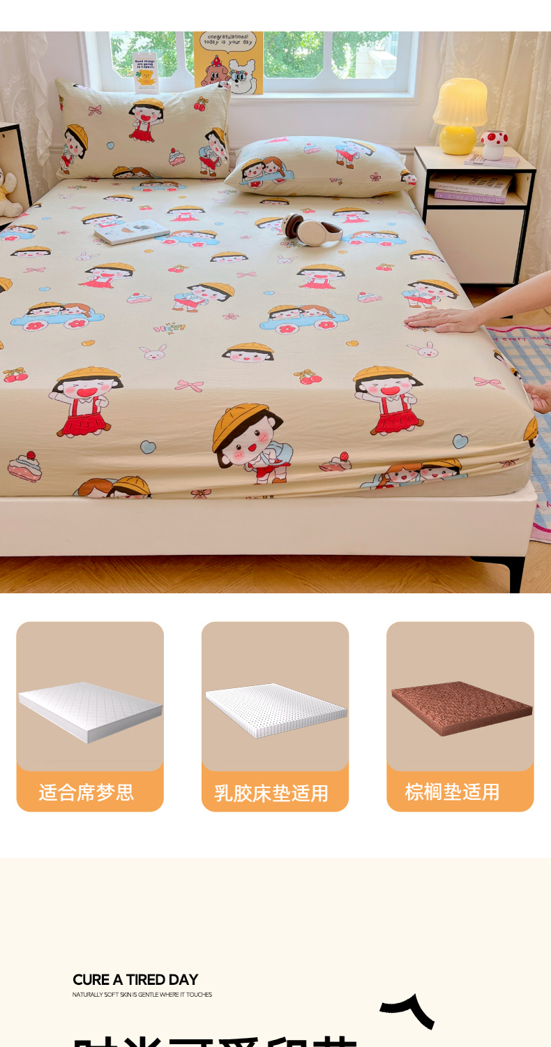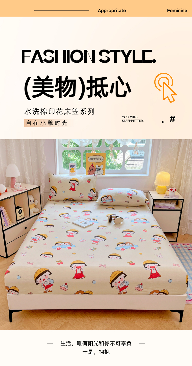 • 91家纺网 家纺一手货源 找家纺 优尚佳生活馆 2025新款亲肤水洗棉印花床笠单品床笠单件单床笠 床笠款-樱桃小丸子