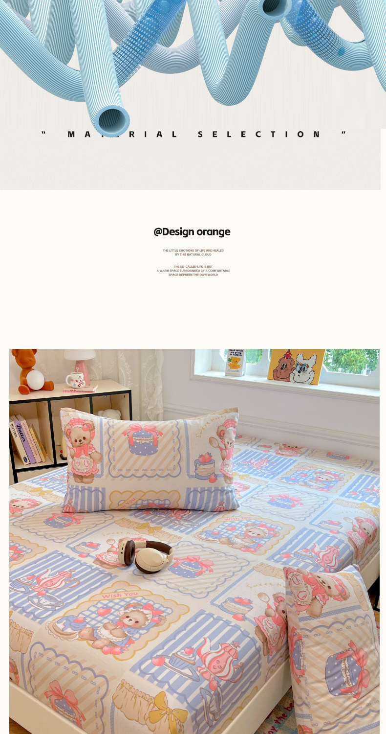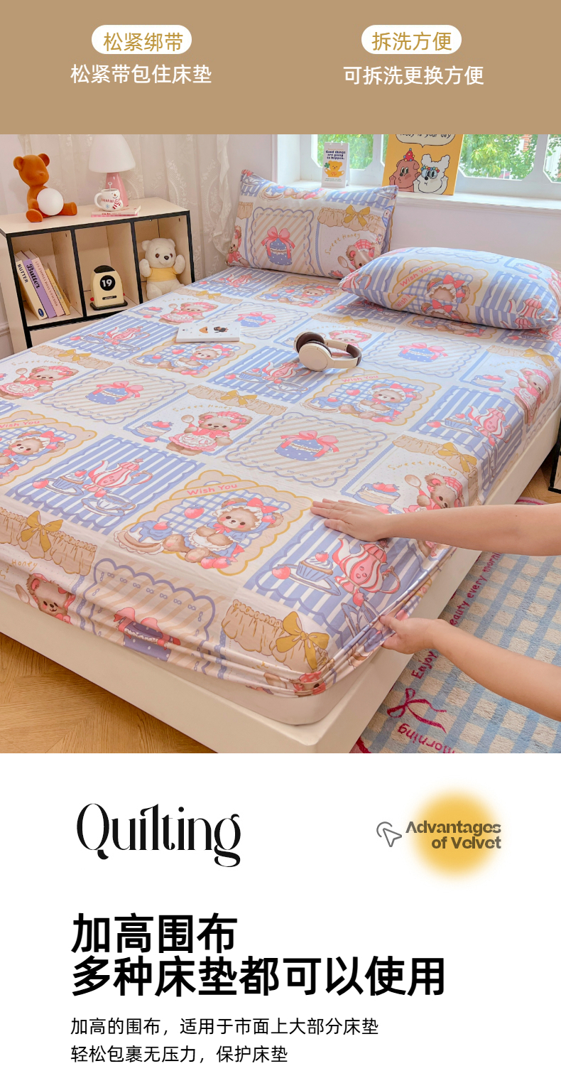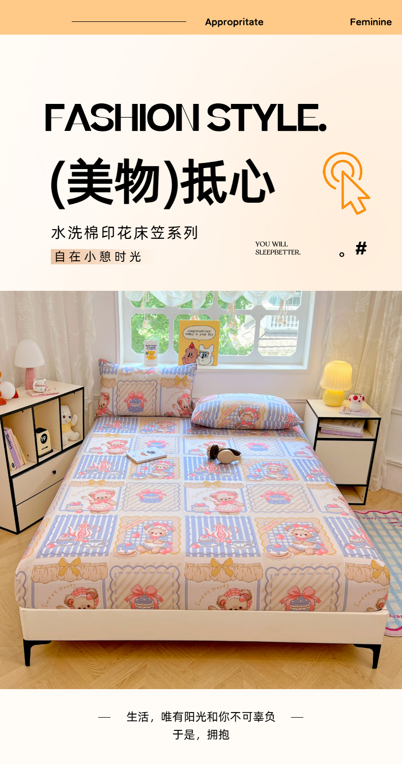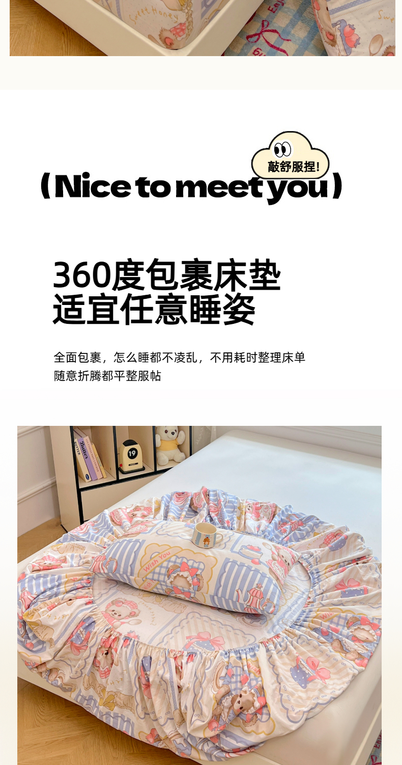 优佳优品 2025新款亲肤水洗棉印花床笠单品床笠单件单床笠 床笠款-熊熊下午茶