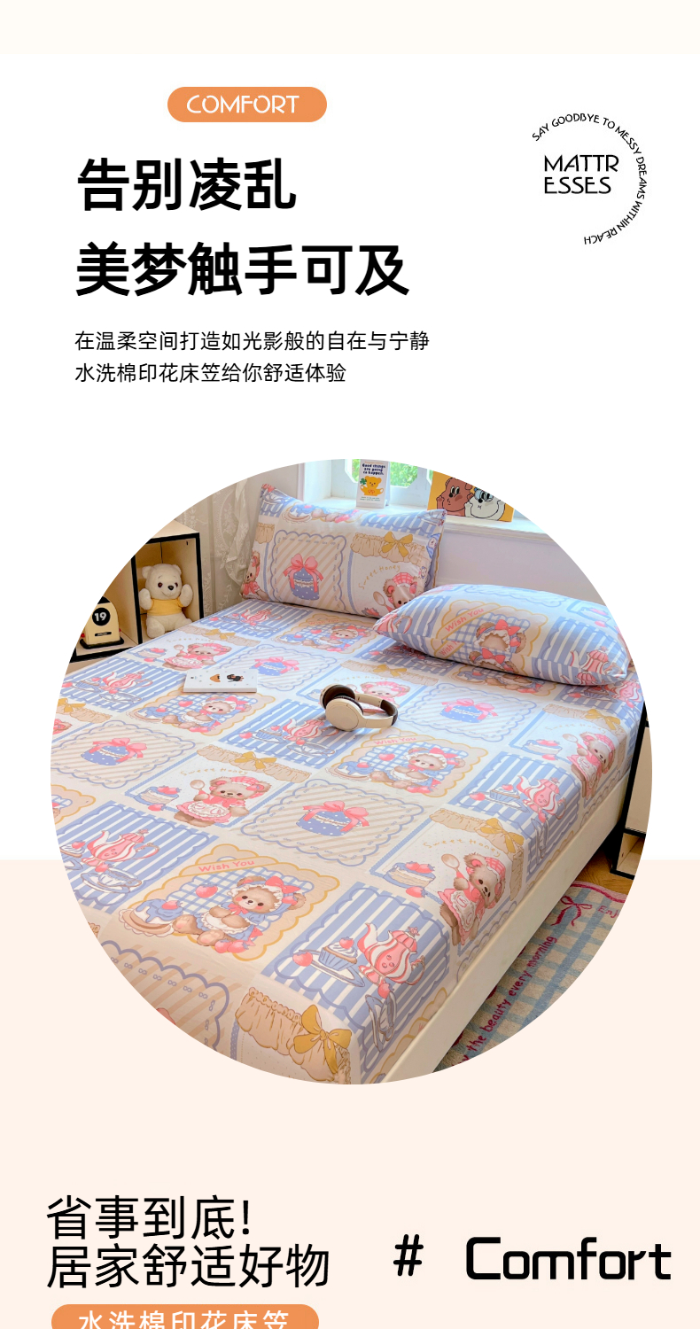 • 91家纺网 家纺一手货源 找家纺 优佳优品 2025新款亲肤水洗棉印花床笠单品床笠单件单床笠 床笠款-熊熊下午茶