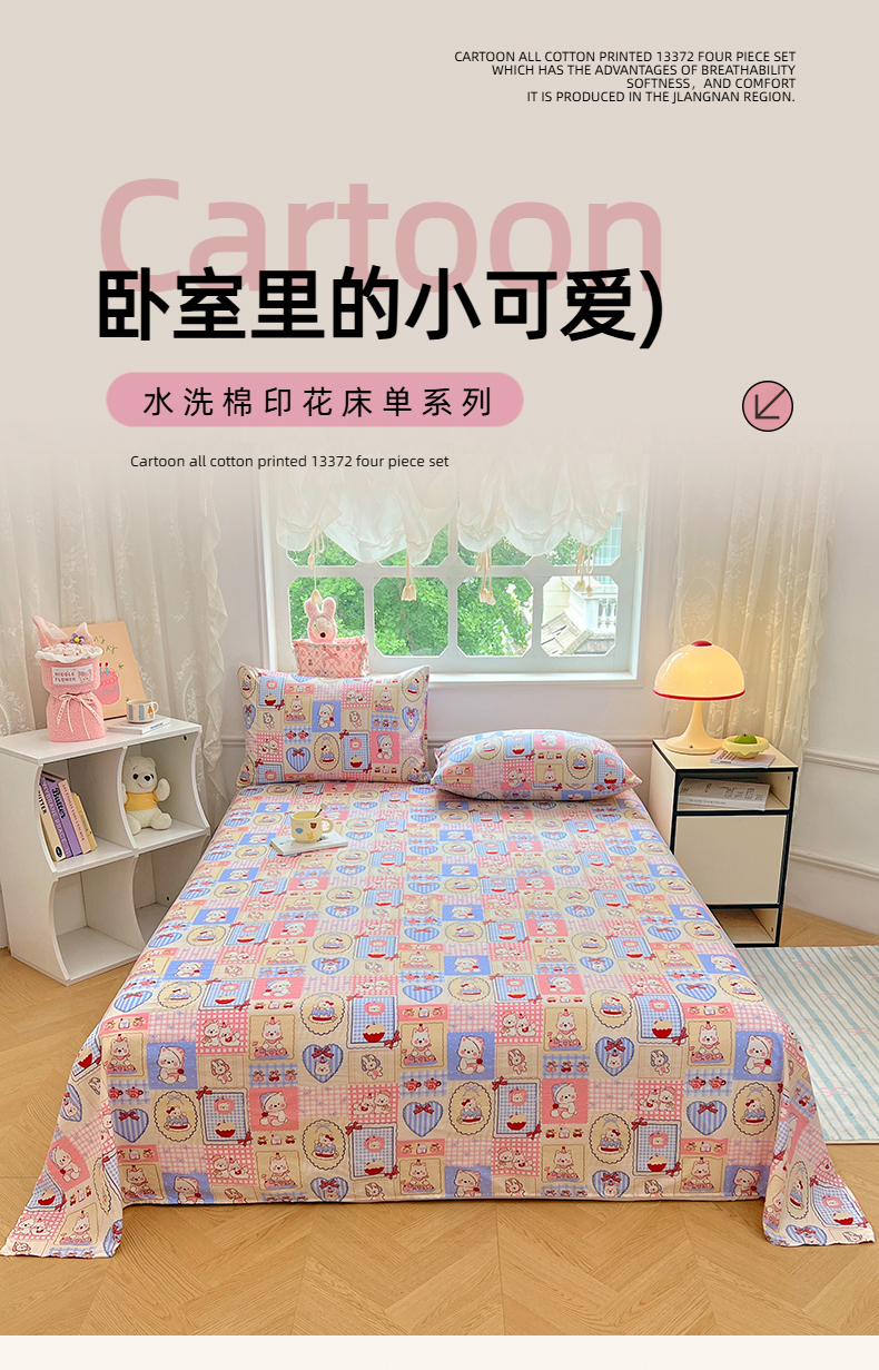• 91家纺网 家纺一手货源 找家纺 优佳优品 2025新款亲肤水洗棉印花床单单品床单单件单床单 床单款-甜宠派对