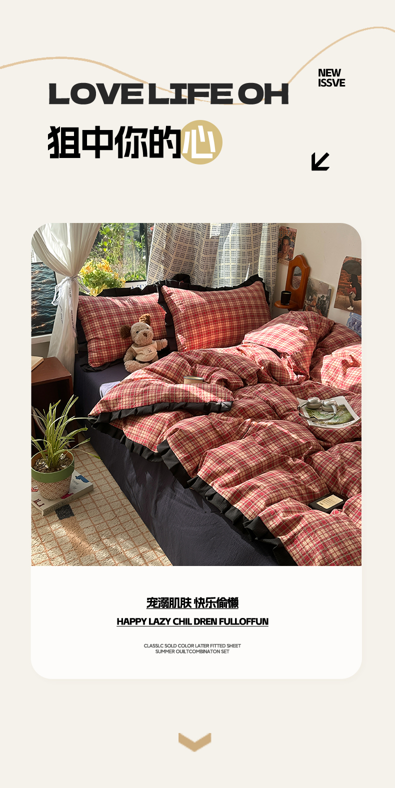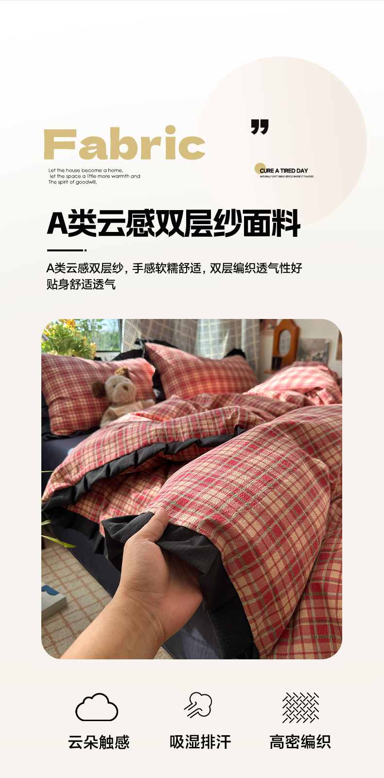 (总)韩巢家纺 2025新款双层纱经典复古风格子被套四件套直播热销款学生宿舍寝室床单三件套
