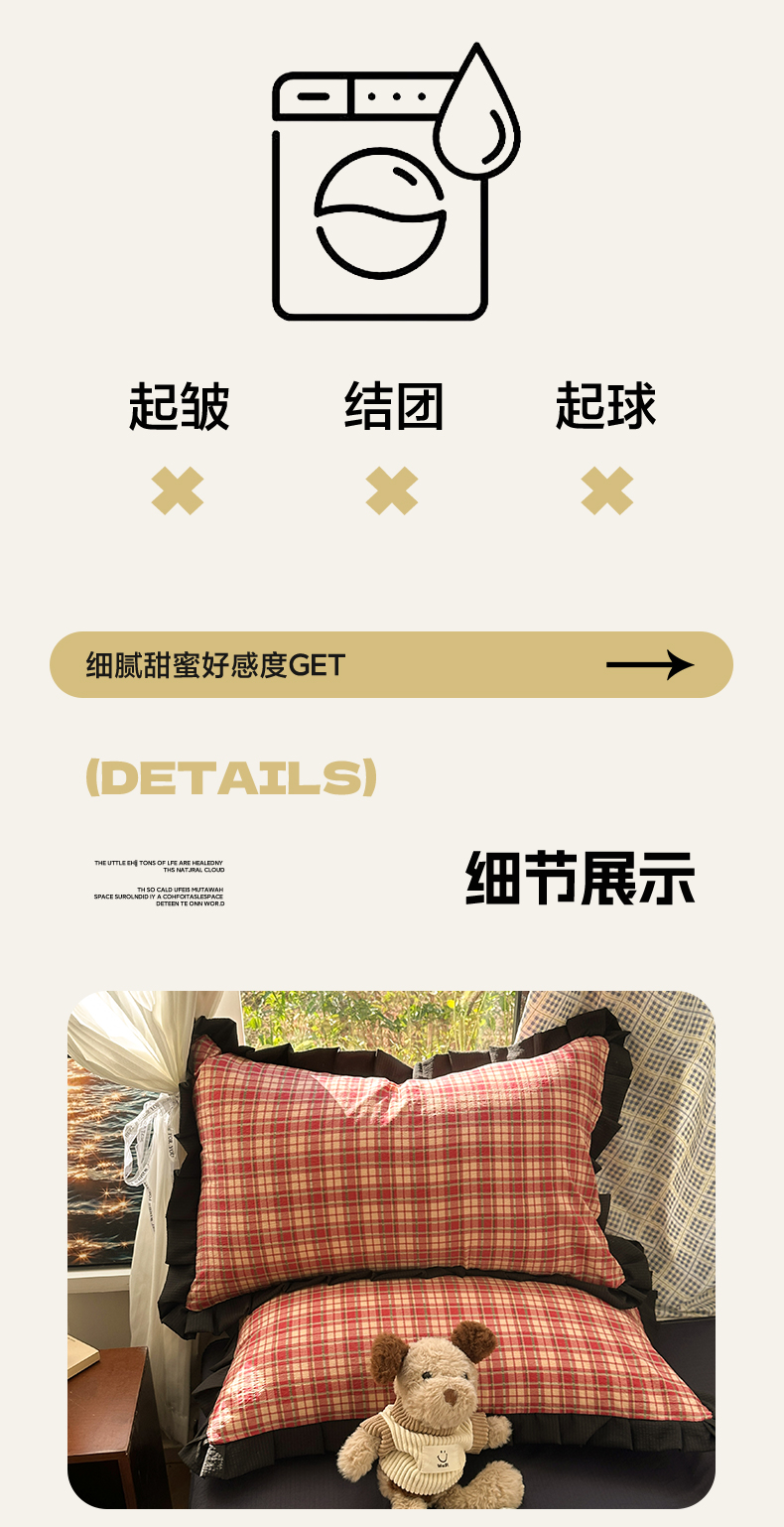商品名称:(总)韩巢家纺 2025新款双层纱经典复古风格子被套四件套直播热销款学生宿舍寝室床单三件套