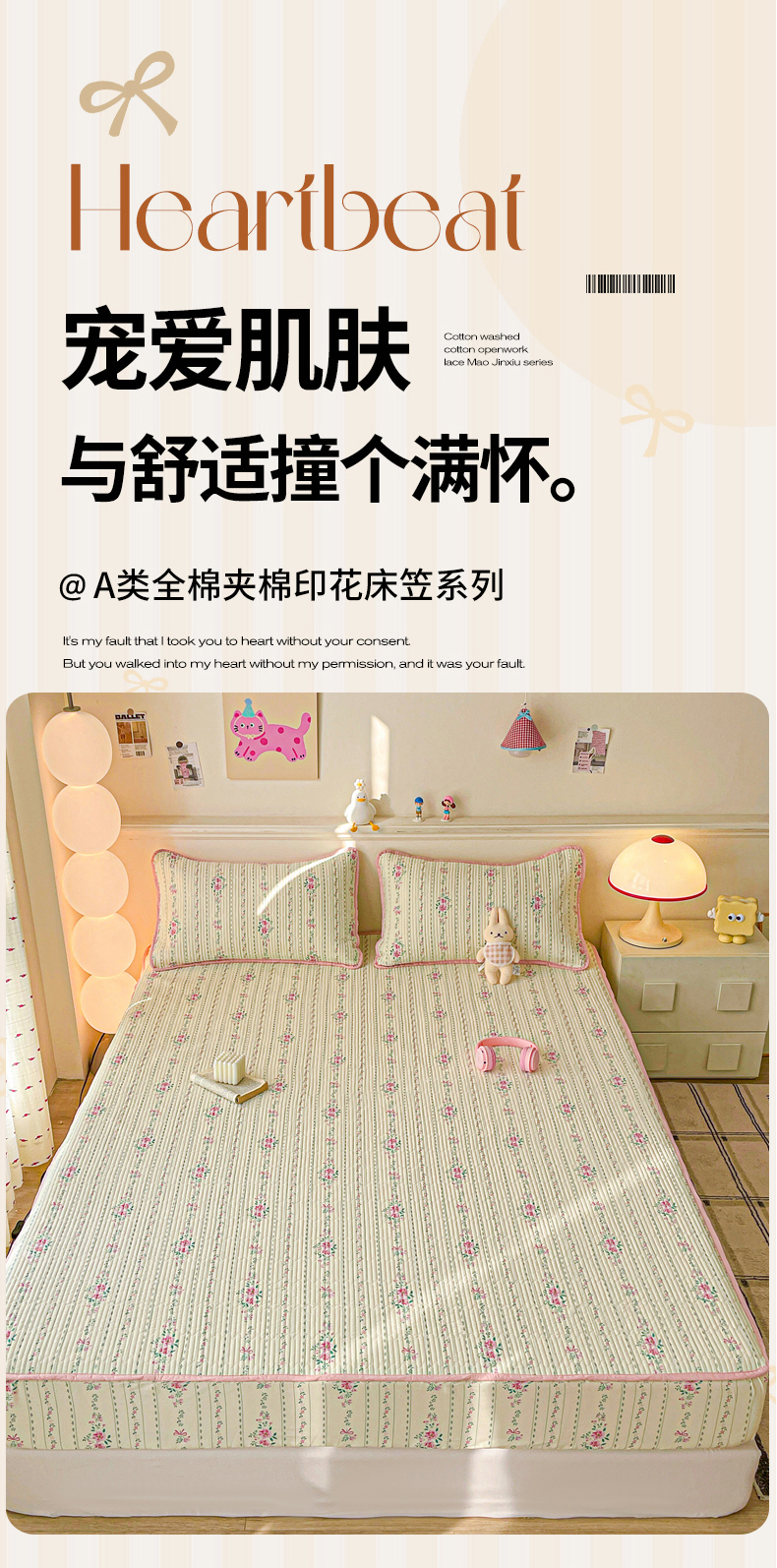 • 91家纺网 家纺一手货源 找家纺 富馨莱 2025新款纯棉夹棉单件床笠 莫奈