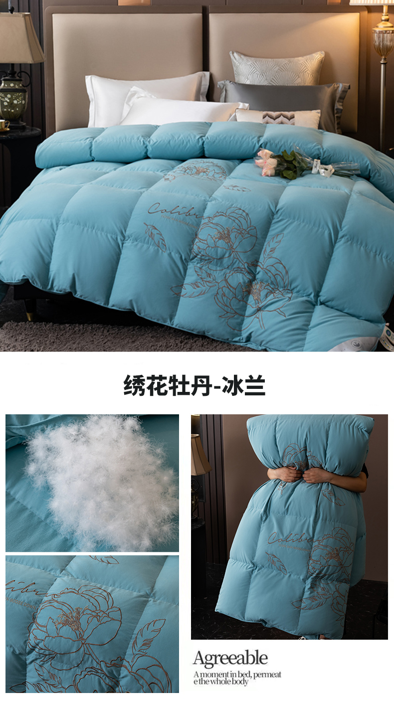 四川牛皮席 2025新款绣花牡丹95%鹅绒被 绣花牡丹-冰兰