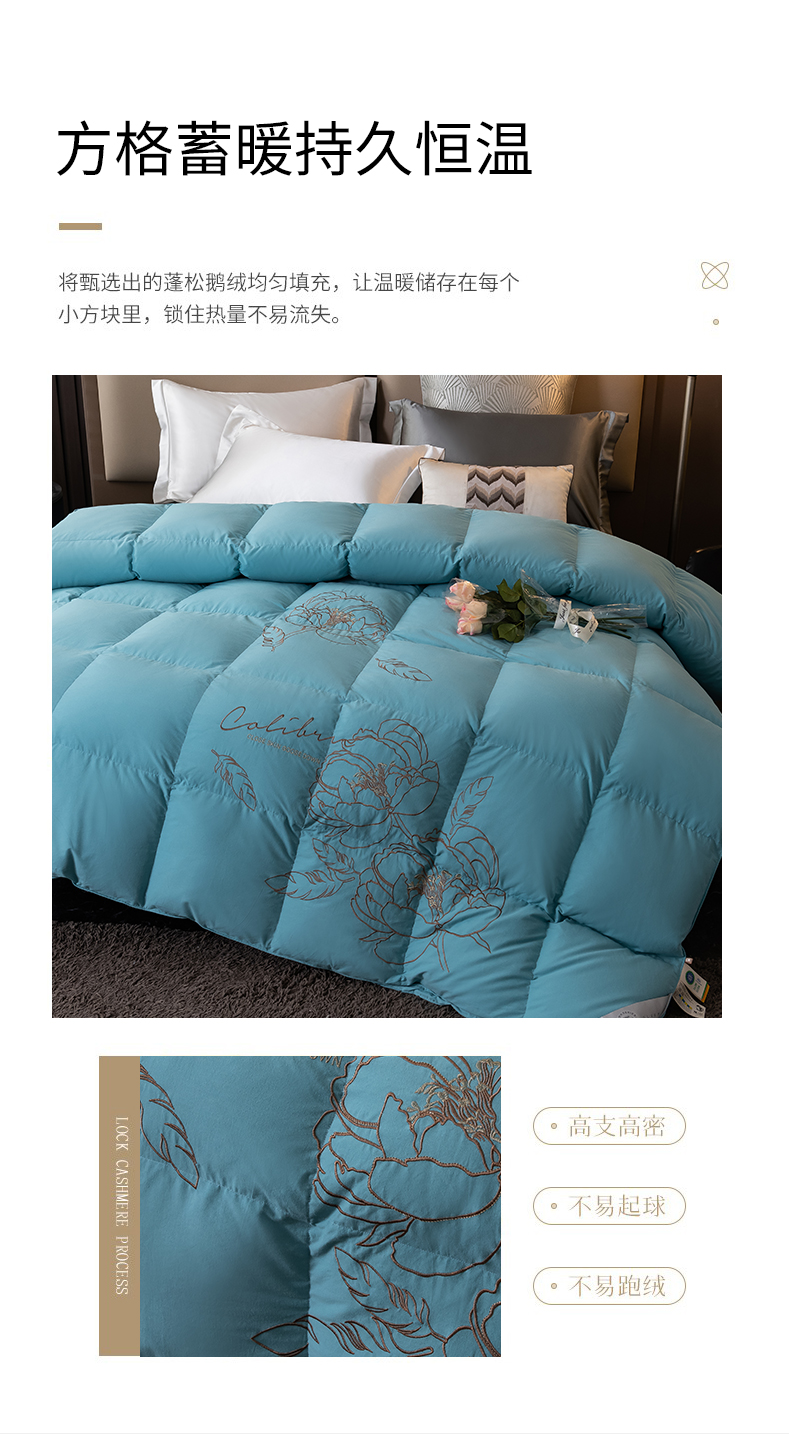 • 91家纺网 家纺一手货源 找家纺 四川牛皮席 2025新款绣花牡丹95%鹅绒被 绣花牡丹-冰兰