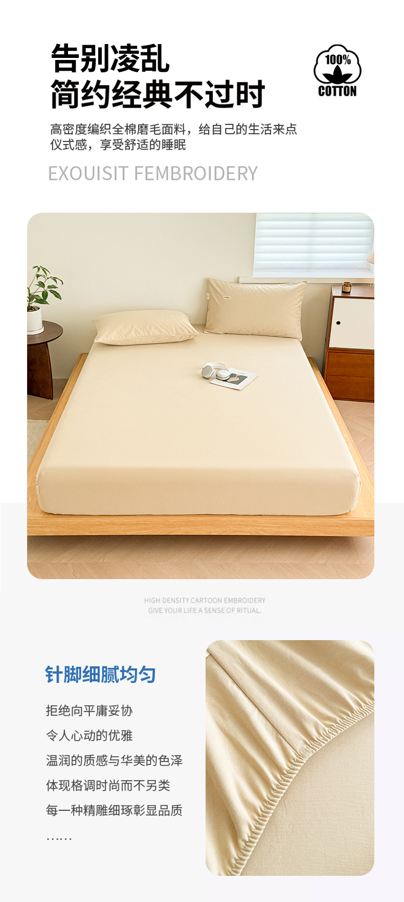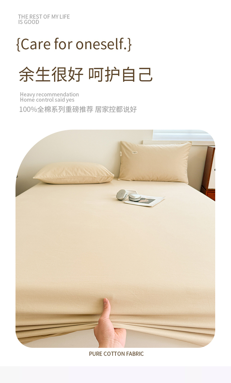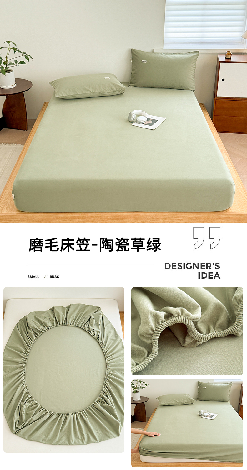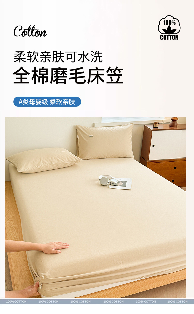 • 91家纺网 家纺一手货源 找家纺 眠博士 2025新款A类纯色全棉磨毛大床床笠三件套 磨毛床笠-陶瓷杏