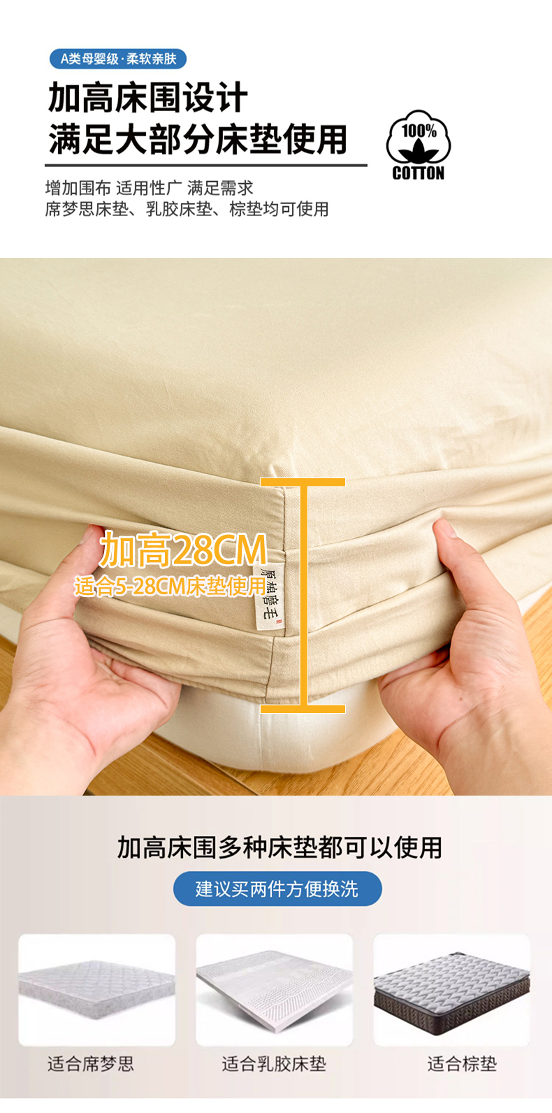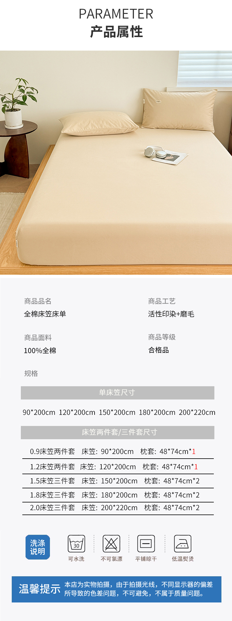 当前位置: 91家纺网 > 商品网购 > 床上用品 > 床笠 > 眠博士 2025新款A类纯色全棉磨毛大床床笠三件套 磨毛床笠-陶瓷杏