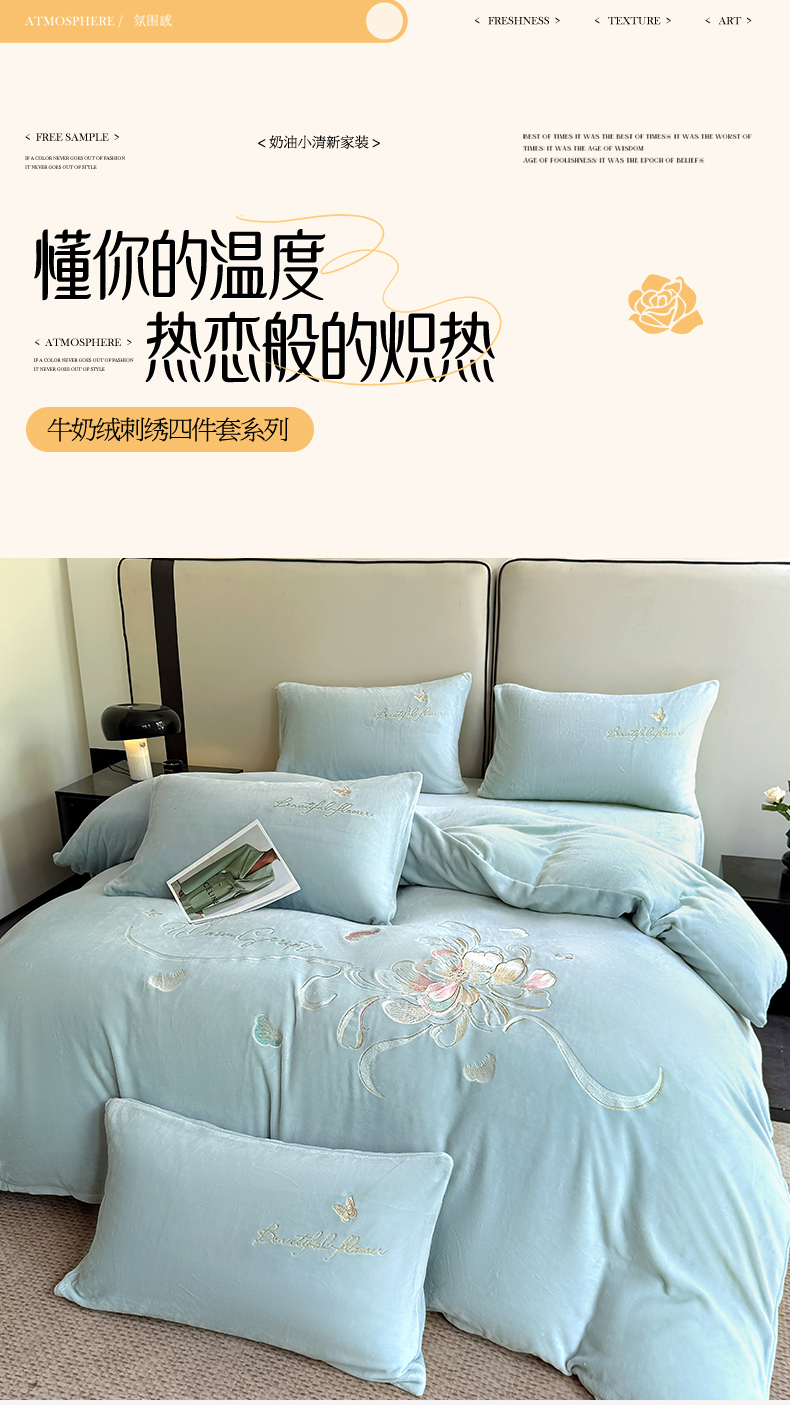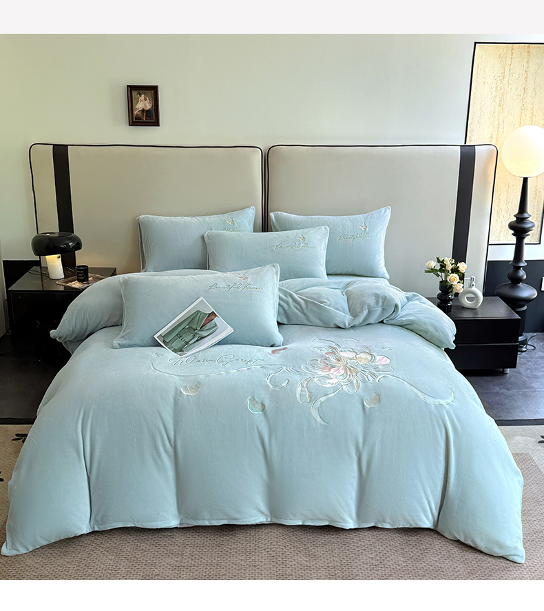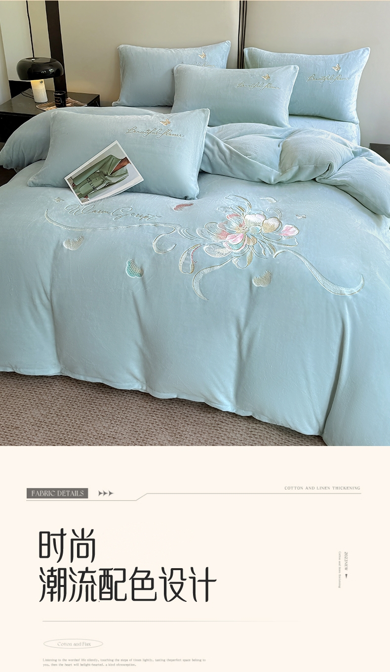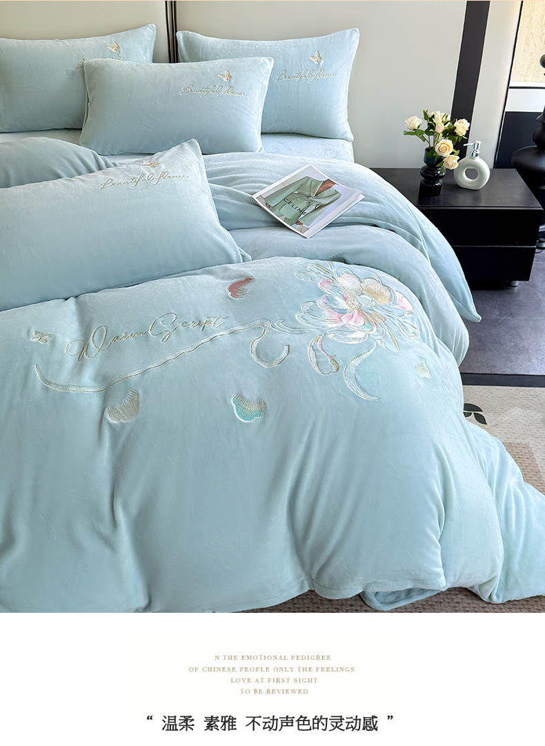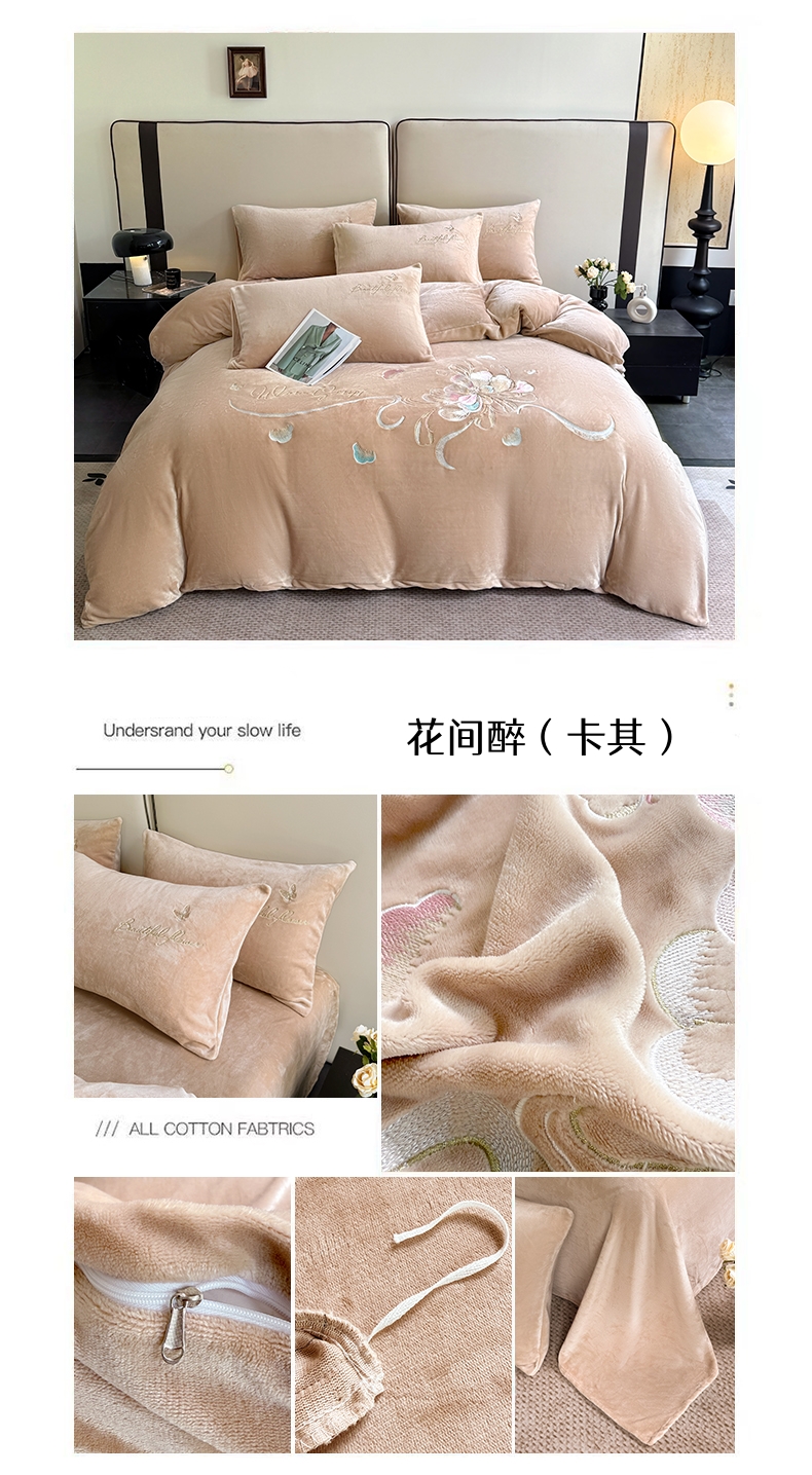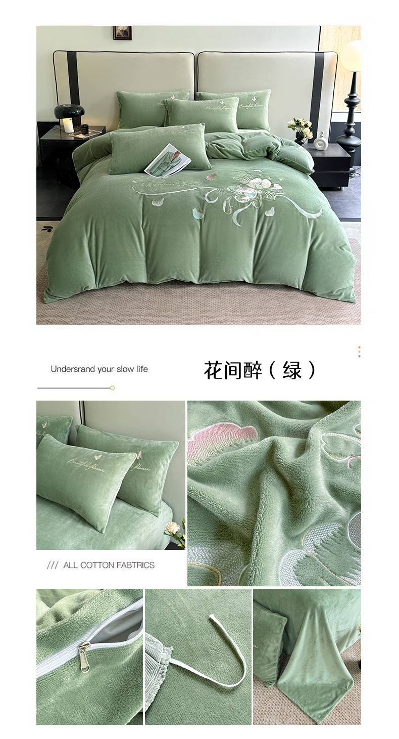 (总)莱凯家纺 2025新款牛奶绒刺绣四件套,花间醉(宝蓝),花间醉(粉),花间醉(灰),花间醉(卡其),花间醉(绿),花间醉(浅蓝)