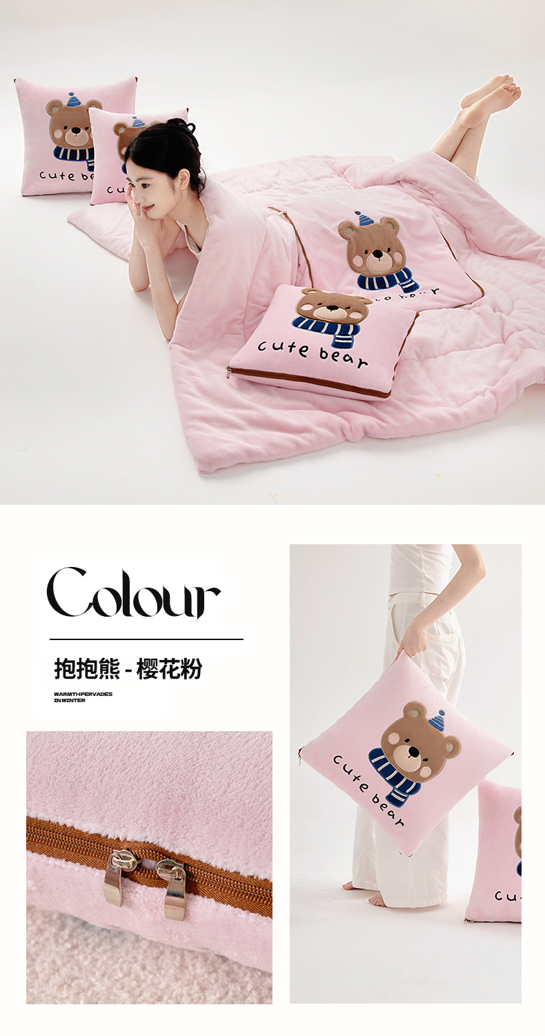 商品名称:阳光依佰抱枕被 2025秋冬新款牛奶绒多功能抱枕被系列-抱抱熊 抱抱熊---樱花粉