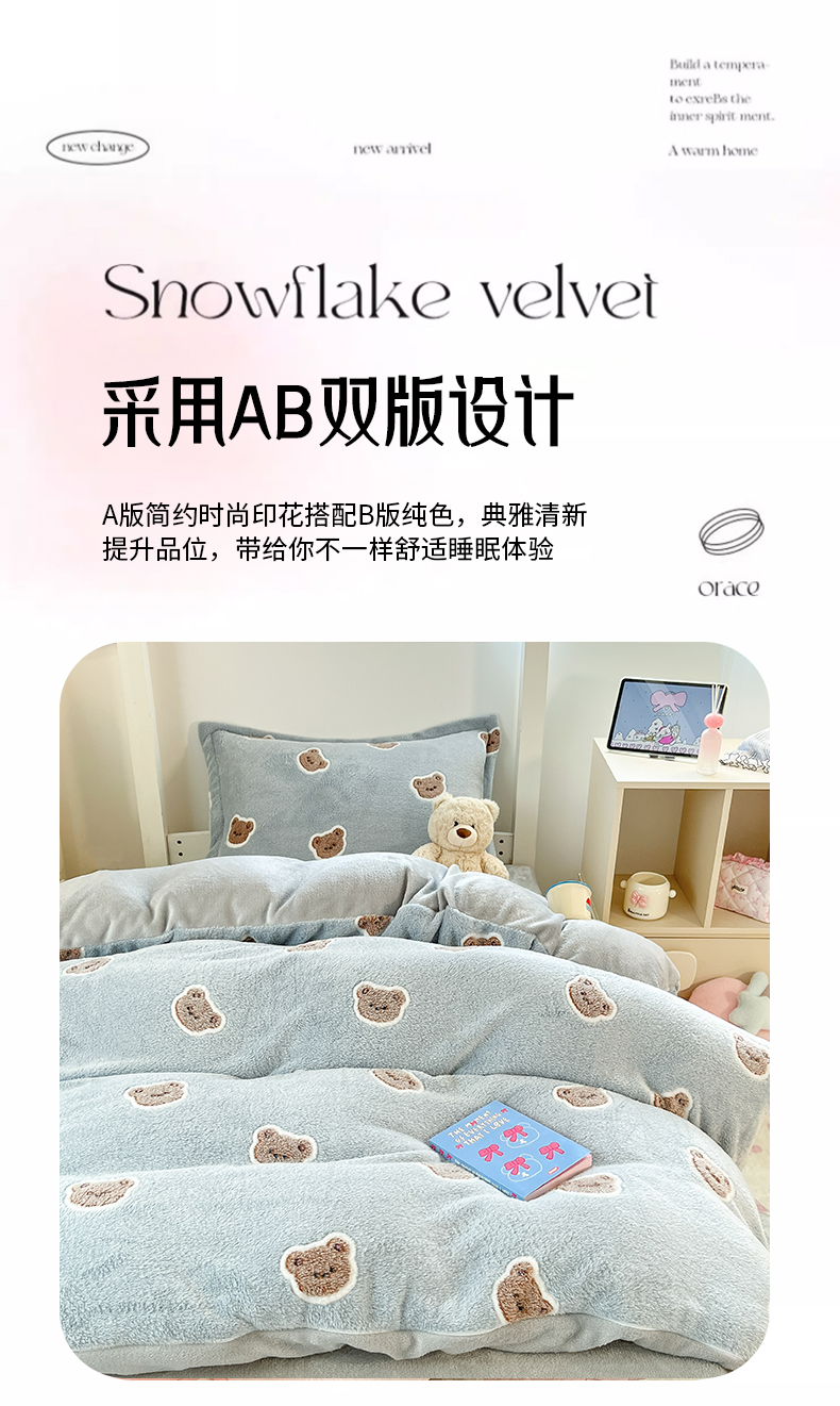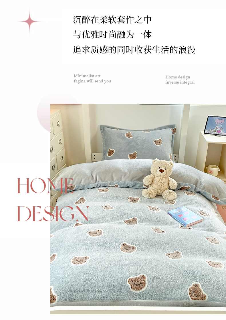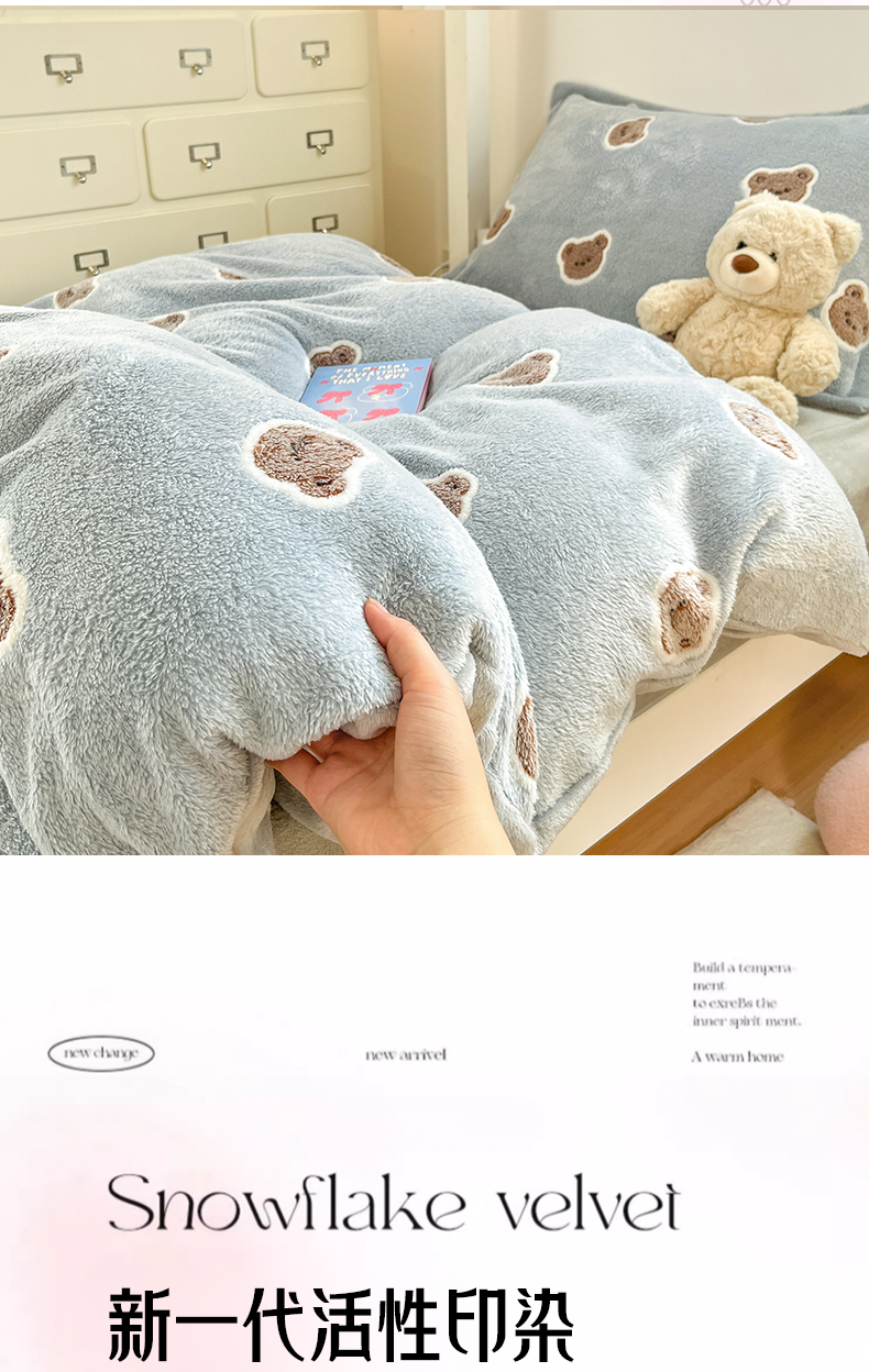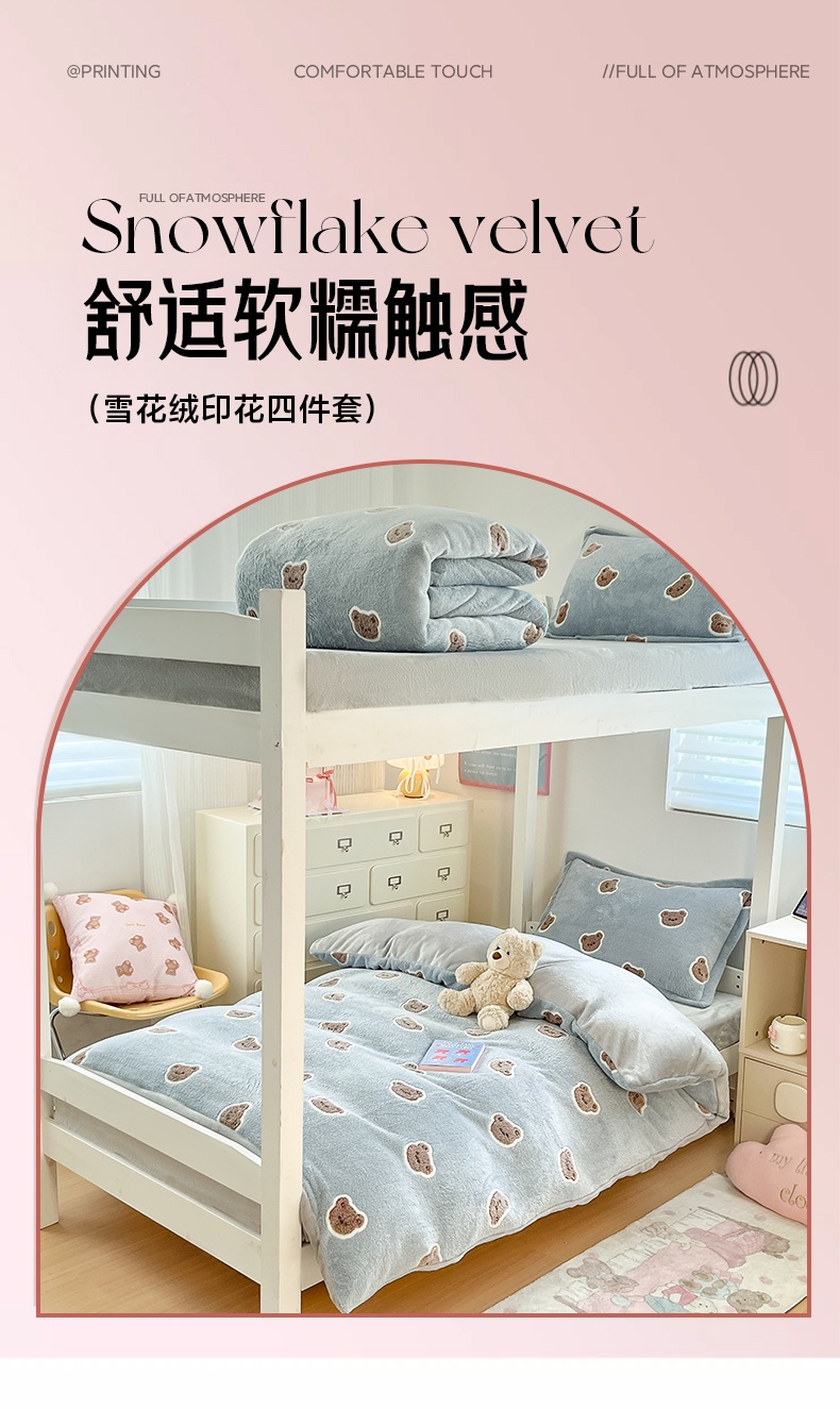 当前位置: 91家纺网 > 商品网购 > 床品套件 > 四件套 > 其它四件套 > 川悦生活 2025新款立体雪花绒印花四件套学生床系列一场景一 波波熊