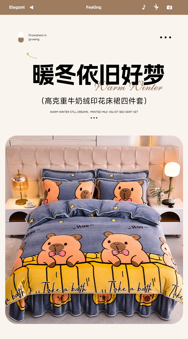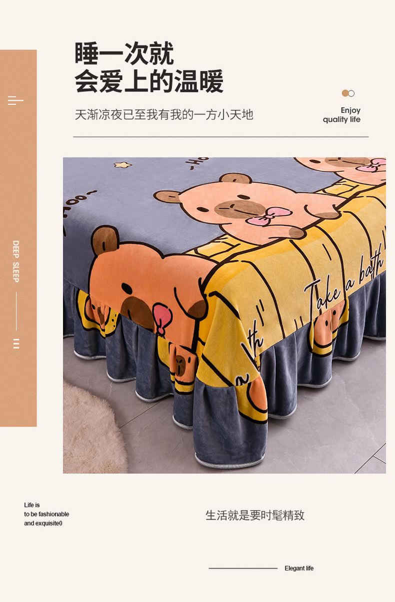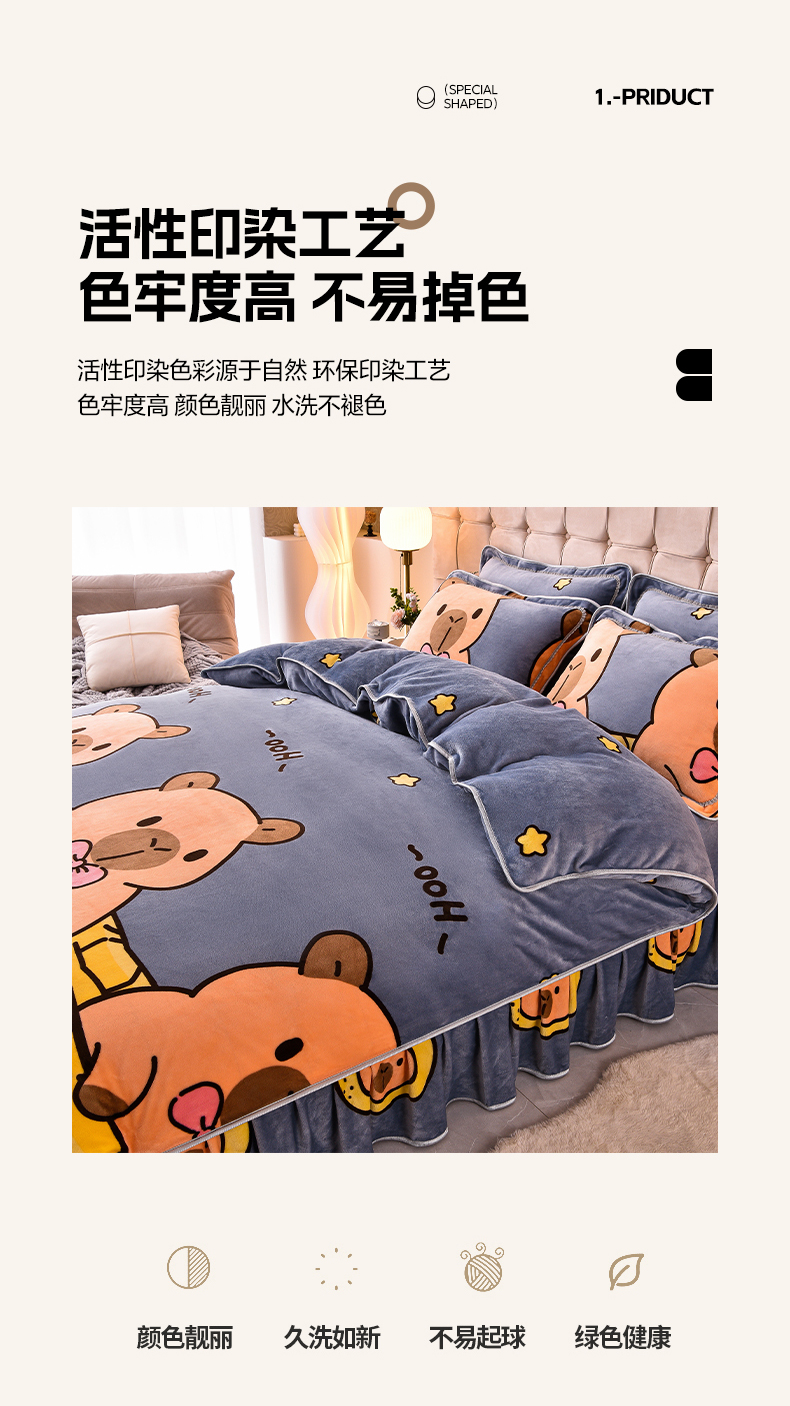 当前位置: 91家纺网 > 商品网购 > 床品套件 > 四件套 > 牛奶绒四件套 > 博兰蒂 2025新款床裙款高克重牛奶绒印花四件套 叶语