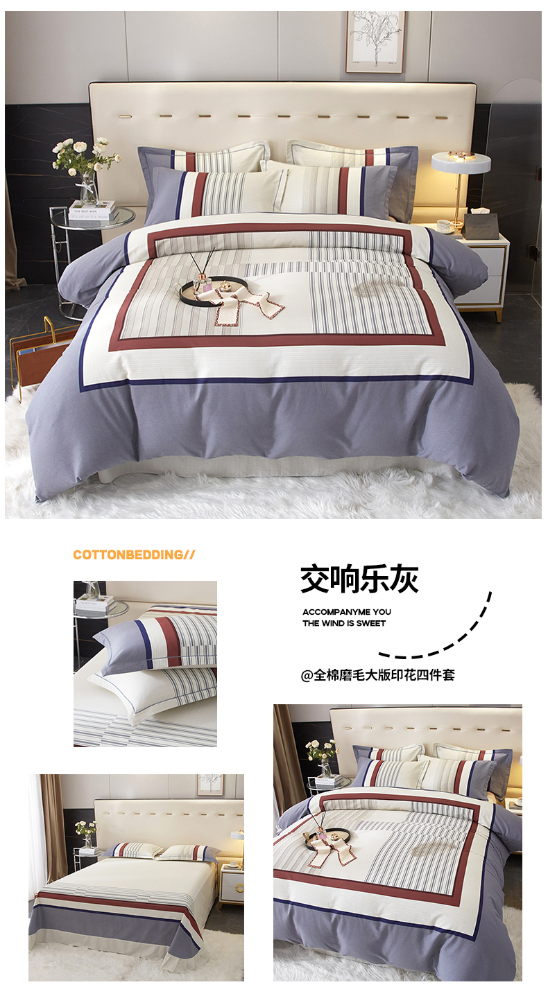 商品名称:启航家居 2025新款全棉纯棉磨毛大版印花四件套 奥斯汀