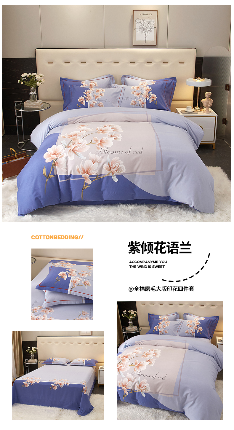(总)启航家居2025新款春夏直播爆款全棉大版印花四件套,清韵花枝紫,彼得兔粉,春风南岸黄,春江晓景,婀娜多姿,粉黛粉,古奈,花暖香风兰,极简,金典兰,锦上繁花粉,卡菲洛,罗马之旅,麦言米,美式情调,梦境之美粉,沐雅清风桔,沐雅清风兰,绒朵绿,少女时代兰,绅士熊绿,生活情调,时尚元素,拾光剪影兰,汀南思雨绿,童年乐趣黄,小苹果粉,许愿树蓝,一路生花-紫,羽梦,云梦花间兰,云梦花间紫,枕上书