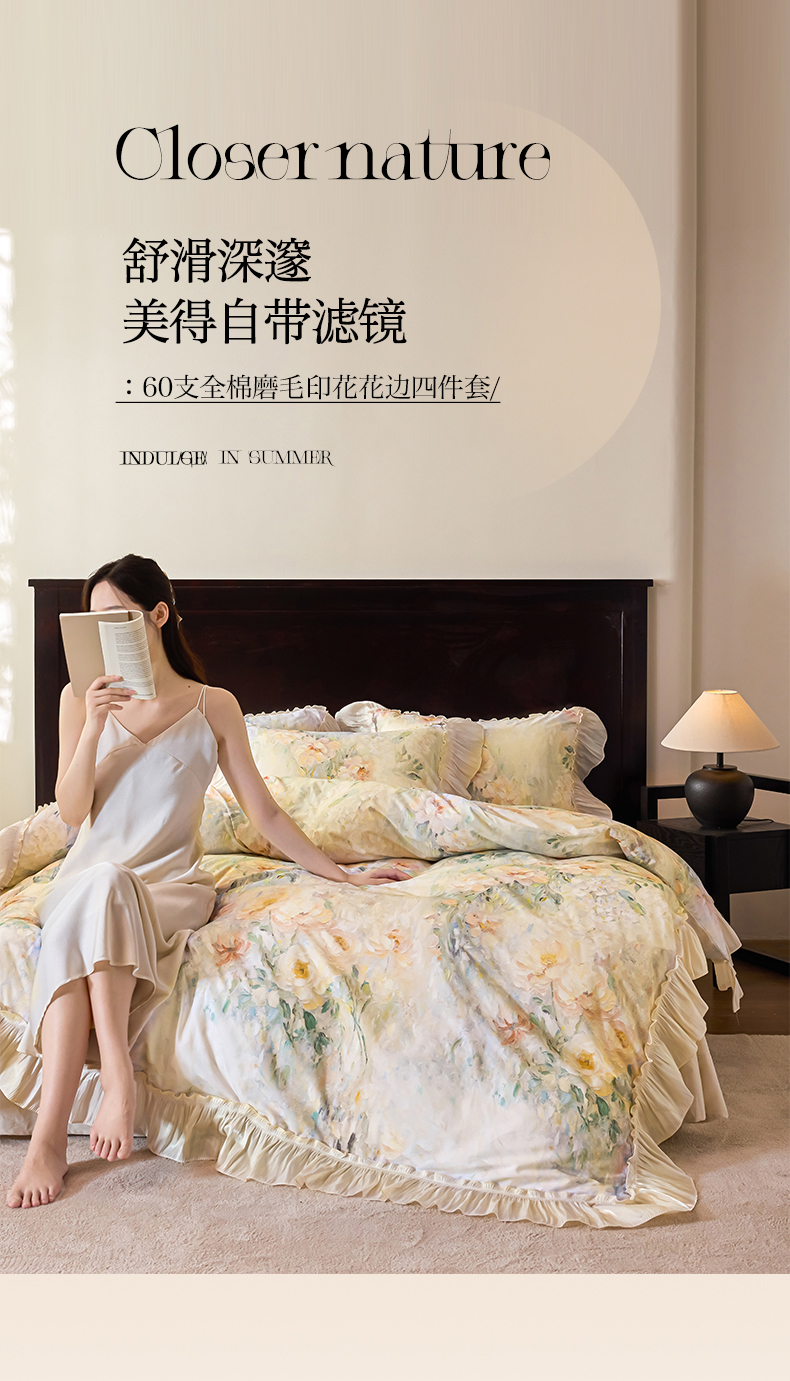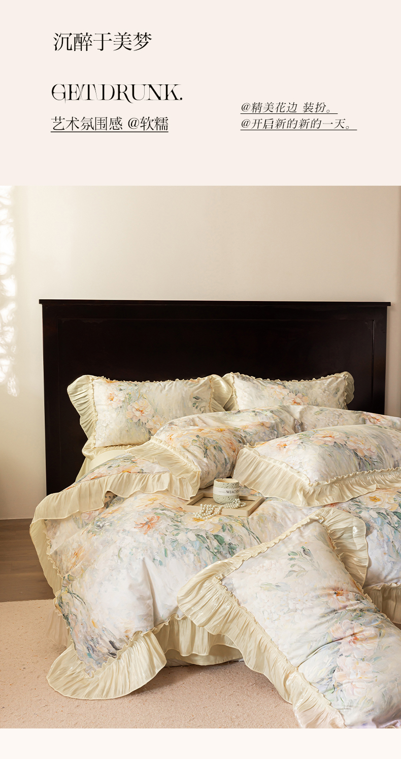 (总)迷尚家居 2025新款全棉60支全棉磨毛花边款四件套,花雾里,花漾倾城,梦里繁花,蜜糖花园,绒花梦境