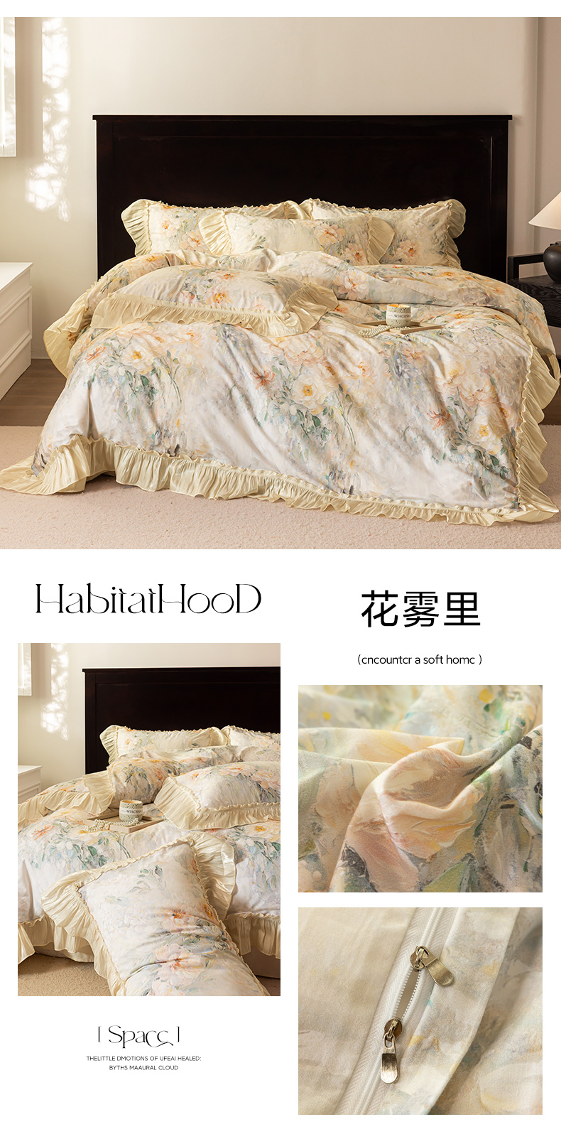 商品名称:迷尚家居 2025新款全棉60支磨毛花边款四件套 花雾里