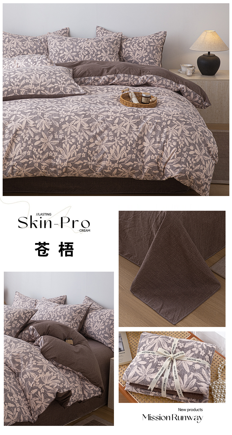 商品名称:芯贝儿 2025秋冬新品加厚原麻复古风亚麻皱皱双层纱水洗m四件套 苍梧