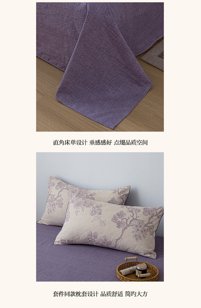 商品名称:芯贝儿 2025秋冬新品加厚原麻复古风亚麻皱皱双层纱水洗m四件套 砚秋